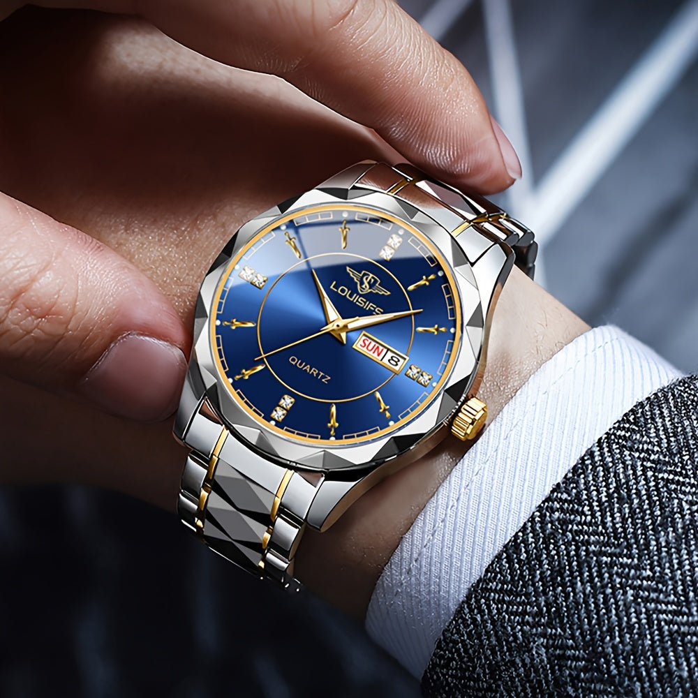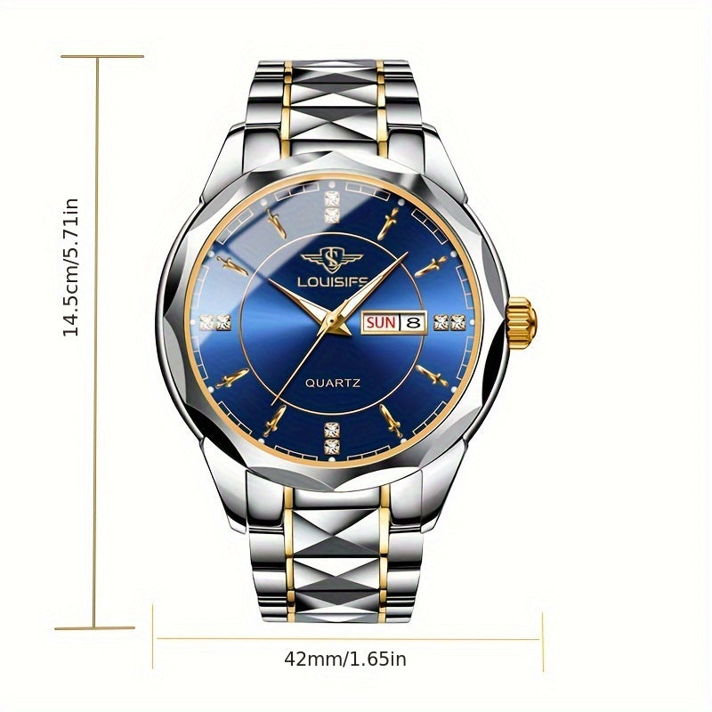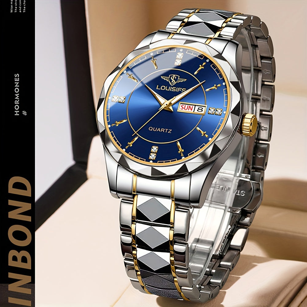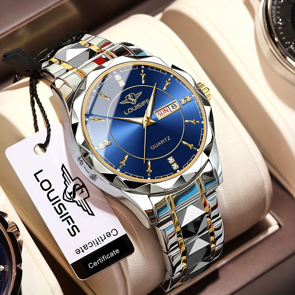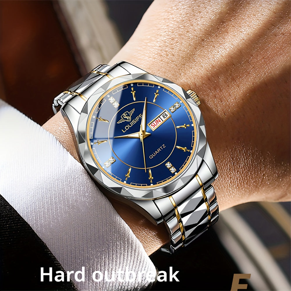Yuqori moda erkaklar soati, sana, hafta va yorug'lik xususiyatlari bilan - suv o'tkazmaydigan kvarts qo'l soati, asl biznes uslubida, qutisi bilan