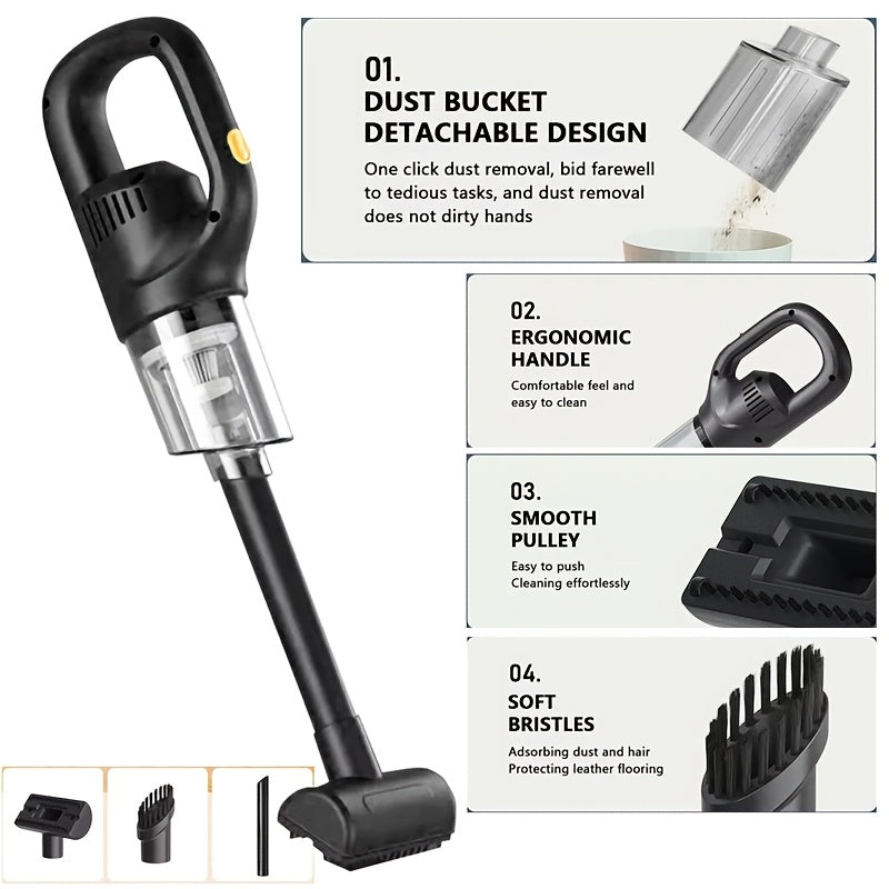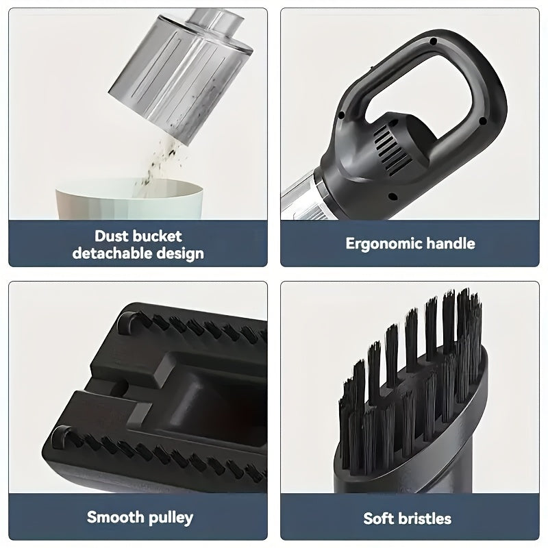 Qayrilmas qo‘l bilan ishlovchi changyutgich 25W past shovqinli, portativ, qayta zaryadlanadigan, gilam, mebel, avtomobil, uy, ofis uchun