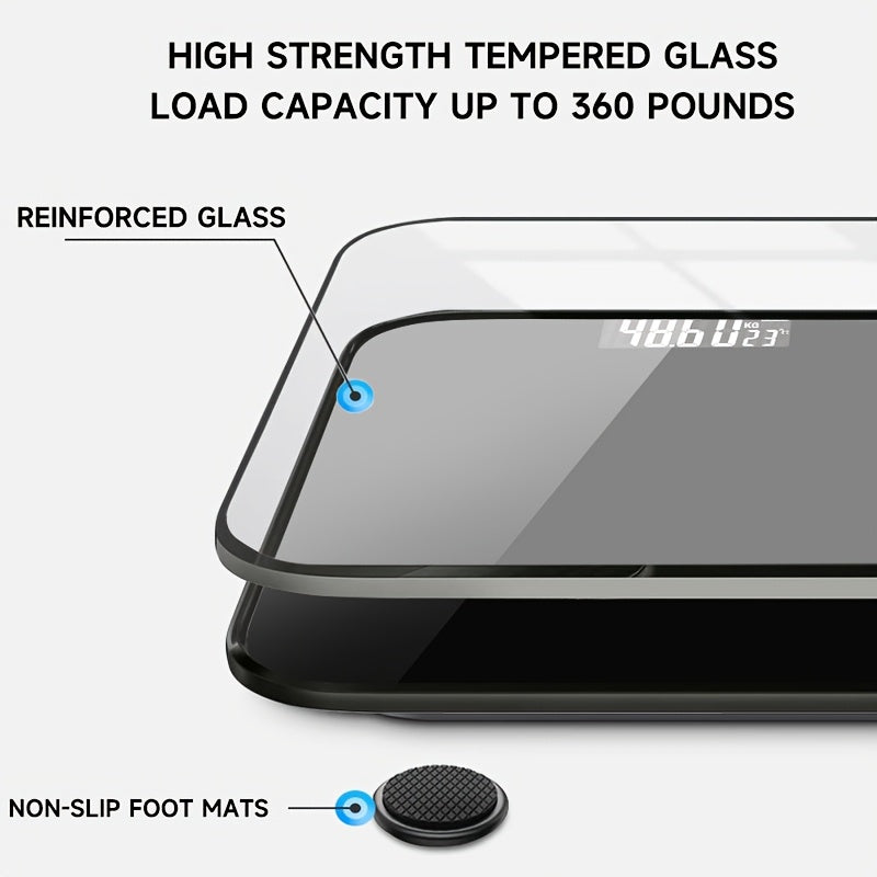 Yuqori aniqlikdagi raqamli tana vazni tarozisi, mustahkam LCD displey bilan. Sog'liqni nazorat qilish uchun batareya bilan ishlaydi (AAA kiritilmagan).