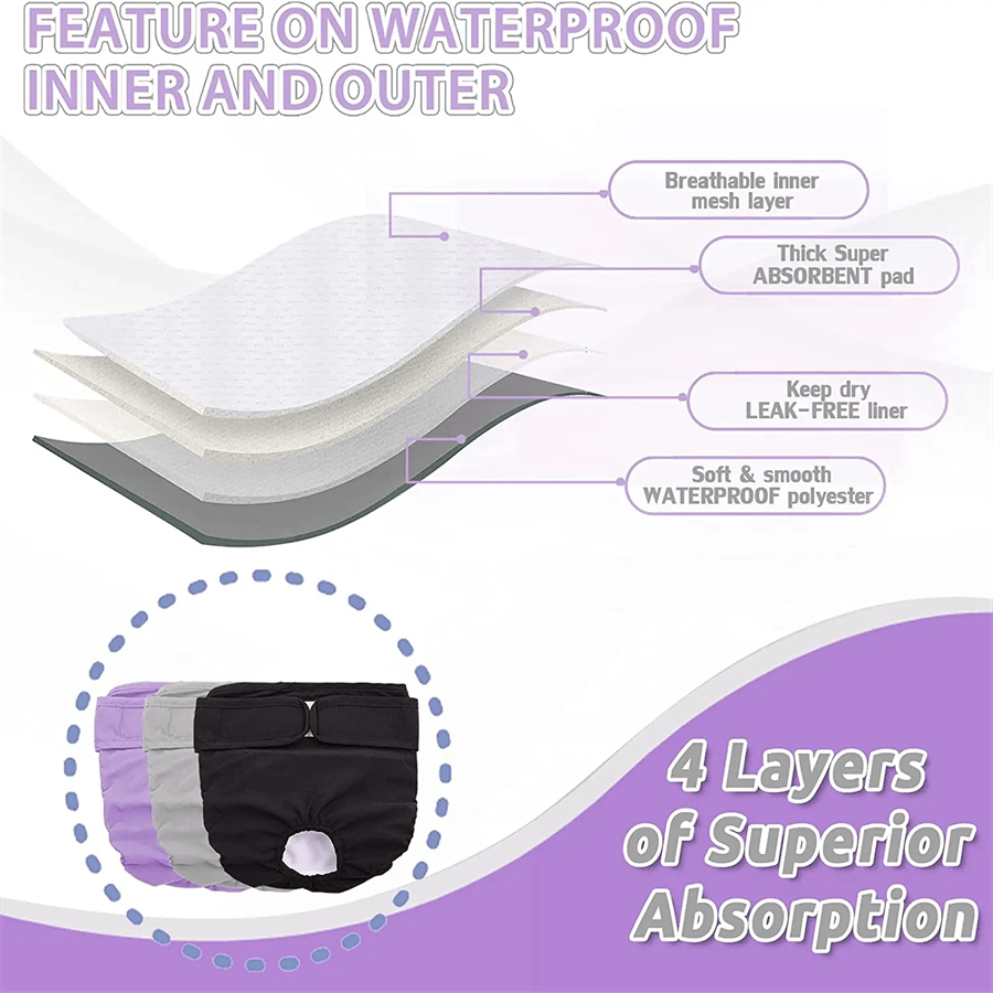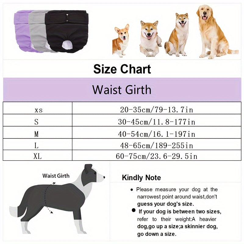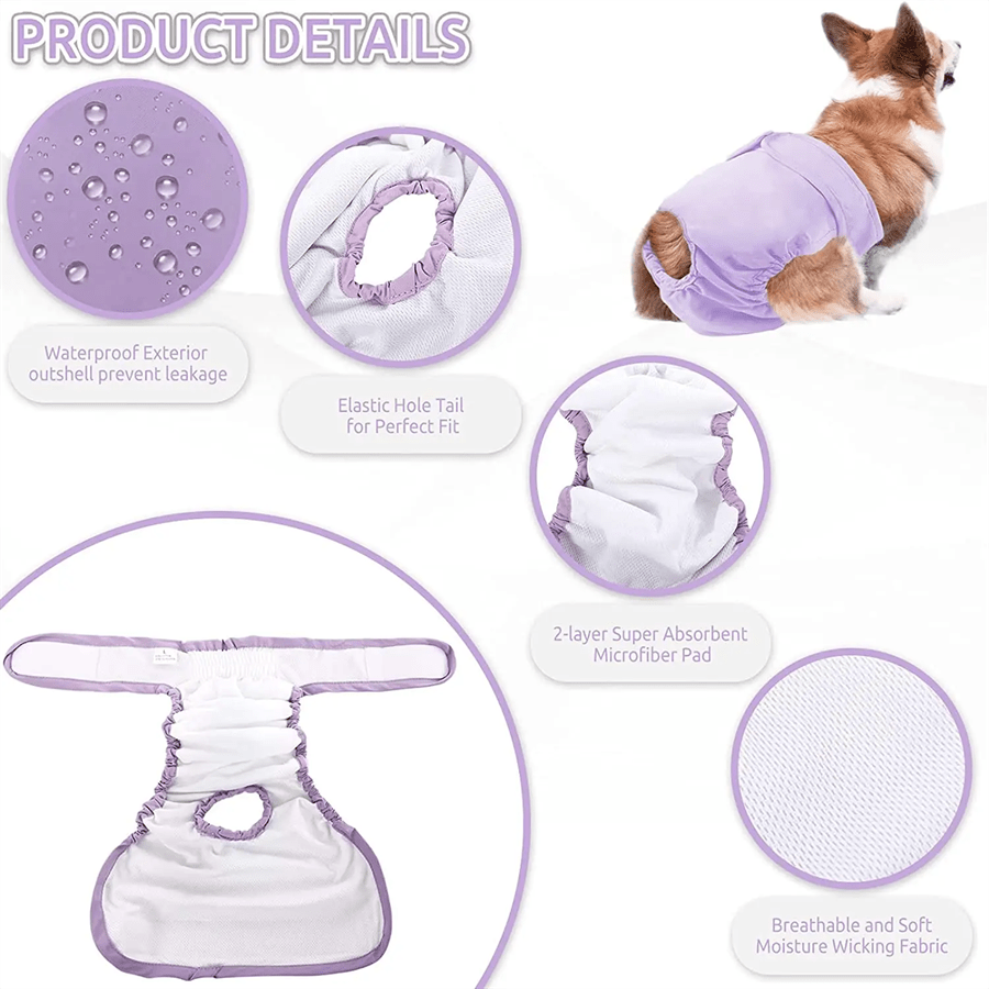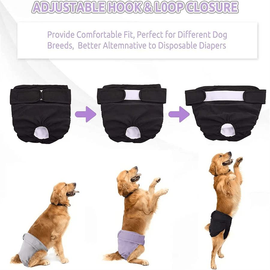 Yuqori sifatli qayta ishlatiladigan urg'ochi itlar uchun pamperslar, qulay moslashuv uchun sozlanadigan tugmalar bilan. Issiqda yoki siydikni nazorat qila olmaydigan itlar uchun ideal. Yuvilishi mumkin va turli zotlar uchun mos keladi.