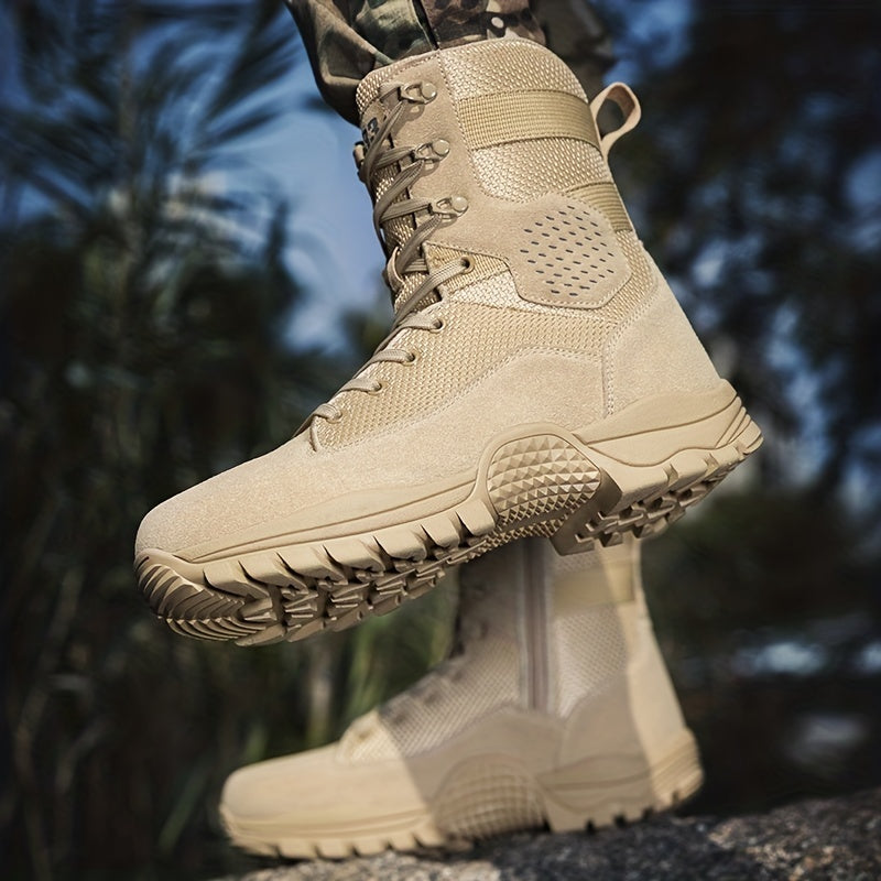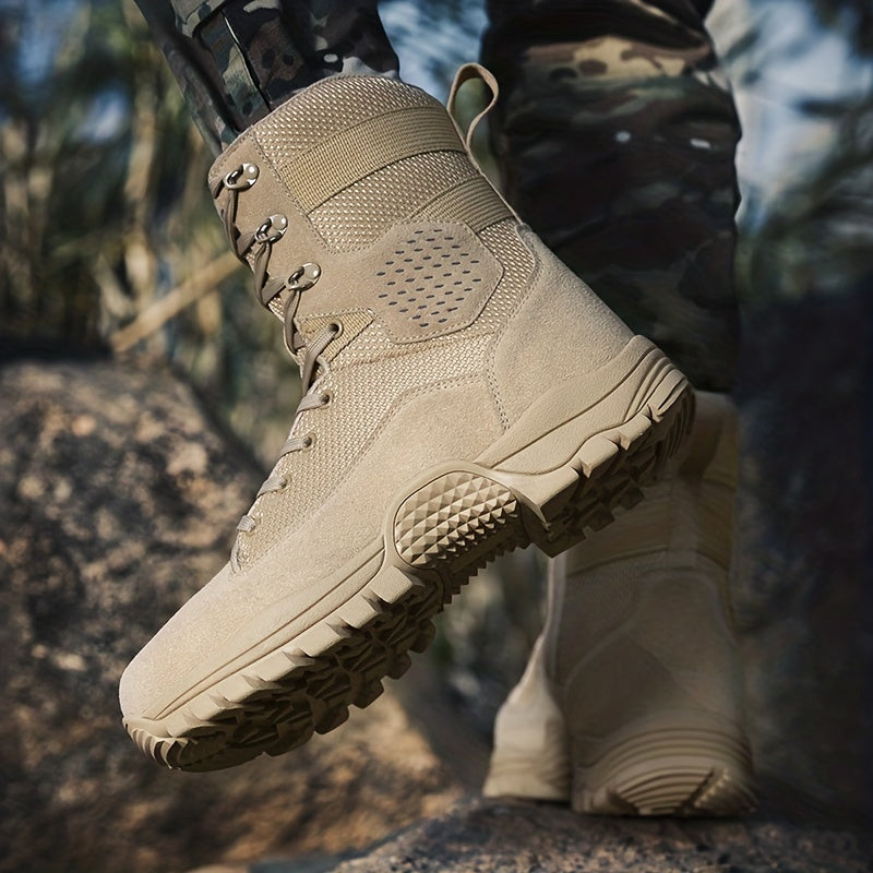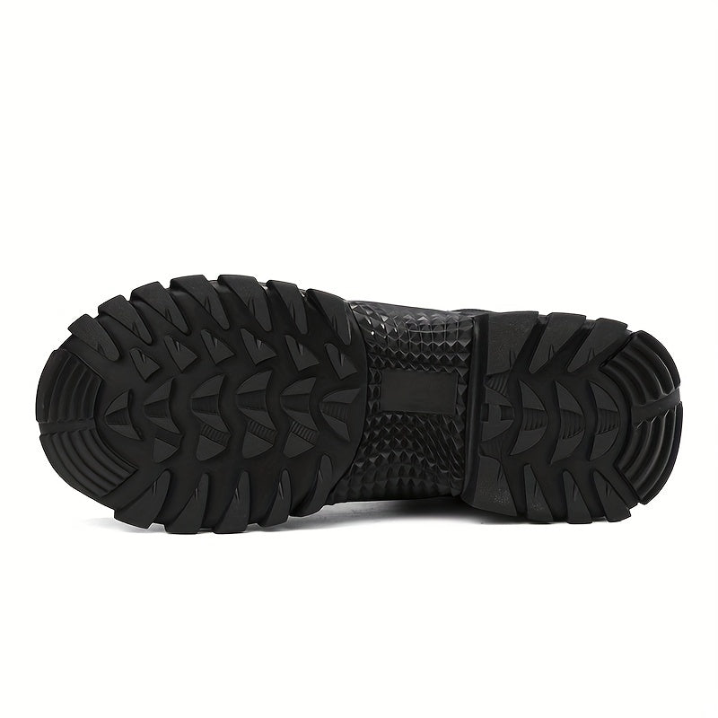 Yuqori yuqori taktik ish botinkalari, yon fermurolari bilan, sirpanmaydigan va tashqi piyoda yurish faoliyatlari uchun mustahkam.