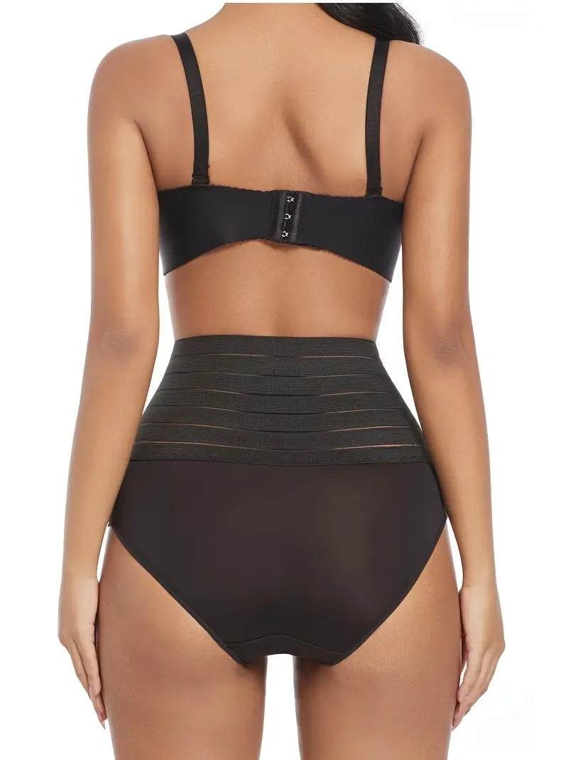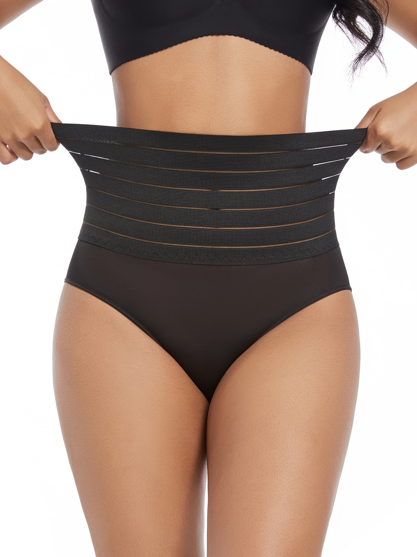 Ayollar uchun qora rangdagi yuqori belli qorin nazorat qiluvchi shapewear ichki kiyimlari. Qulay va nafas oladigan, o'ralmas. Cho'ziluvchan nylon va elastan aralashmasidan tayyorlangan. Qo'l bilan yuvish yoki quruq tozalash. Ideal for