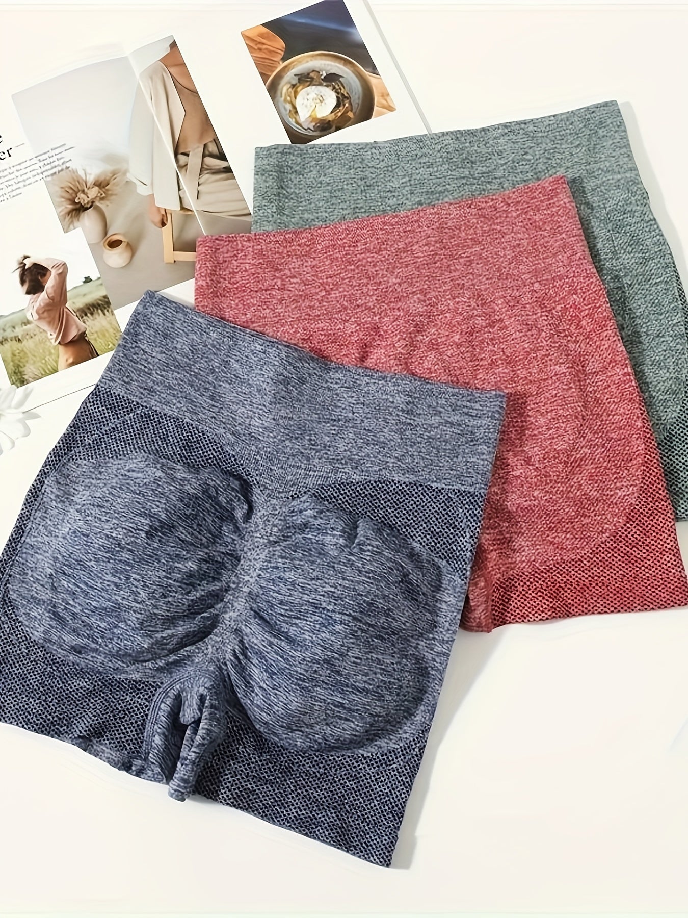 Yuqori beldagi qorin nazorati yoga shortlari, shaftoli ko'taruvchi, but ko'taruvchi, to'qilgan polyester matodan tayyorlangan, bir rangda, astarlangan va mashg'ulotlar uchun qulay.