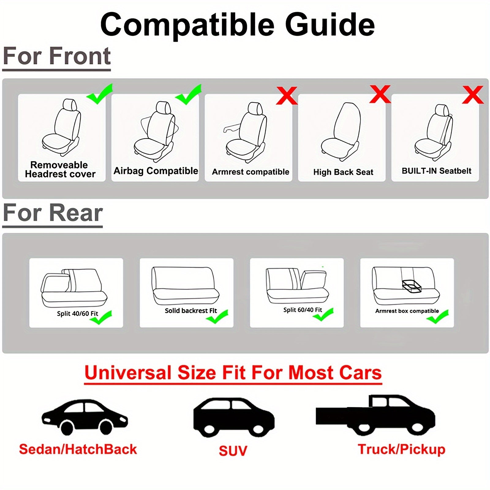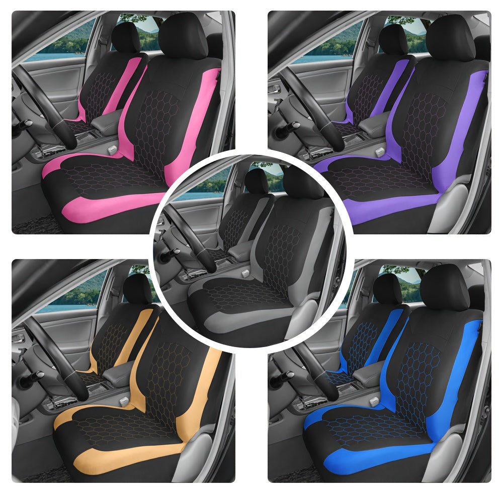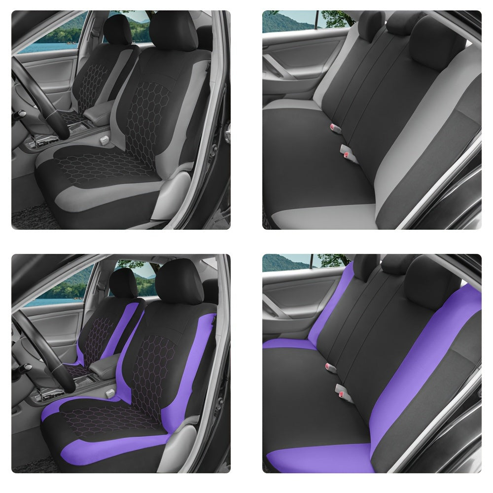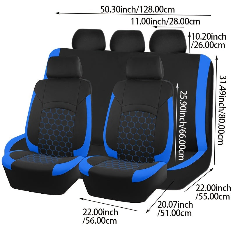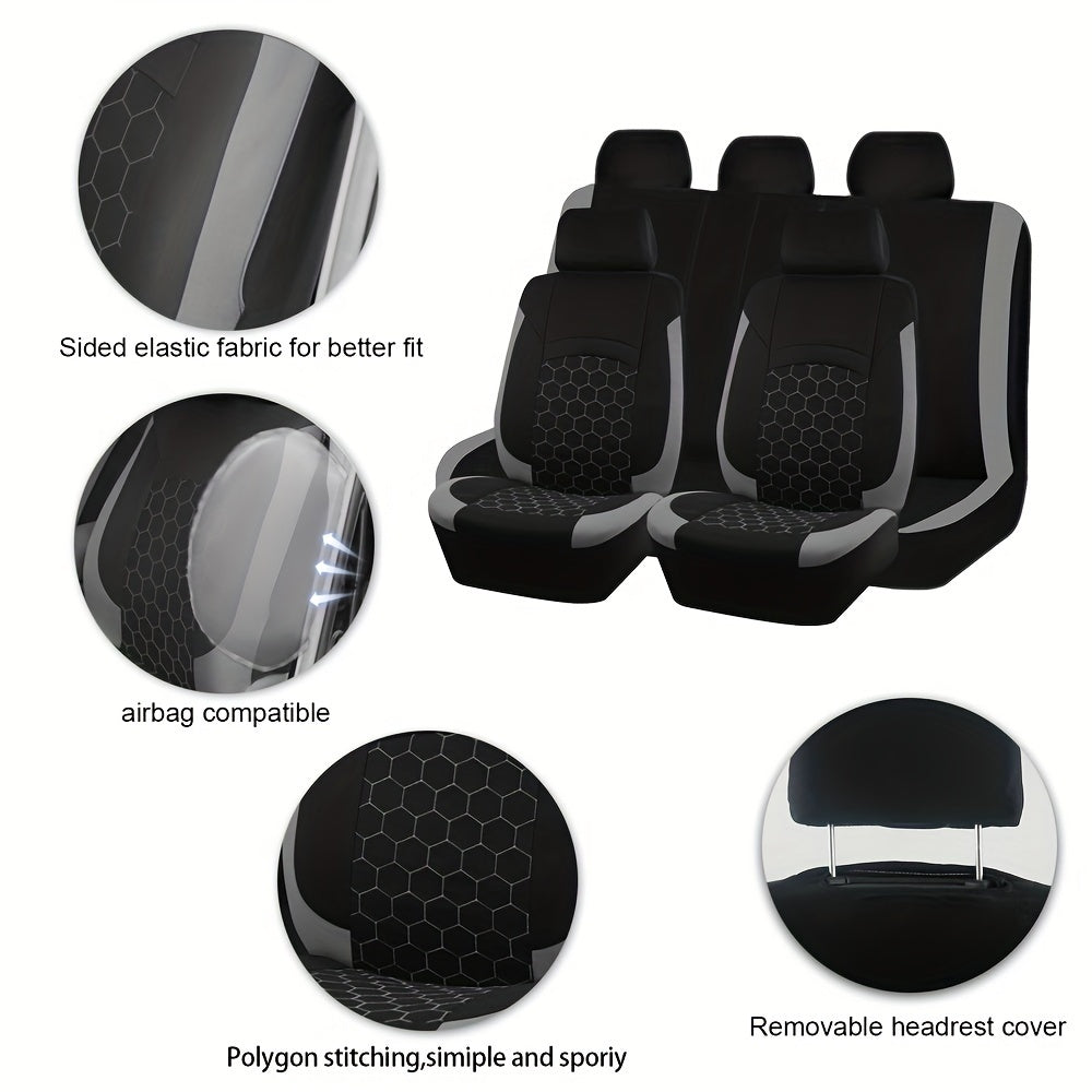 Futbol naqshli asalari to'plami bilan tikilgan polyester avtomobil o'rindiqlari qoplamalari, ko'pchilik transport vositalari uchun mos keladi.
