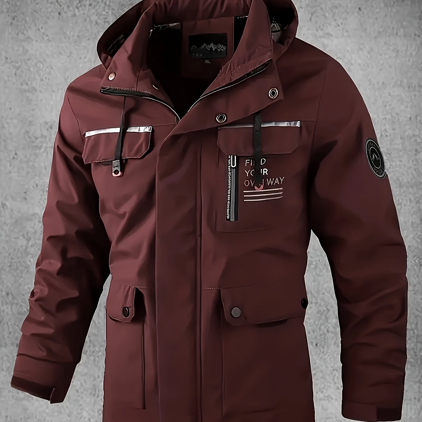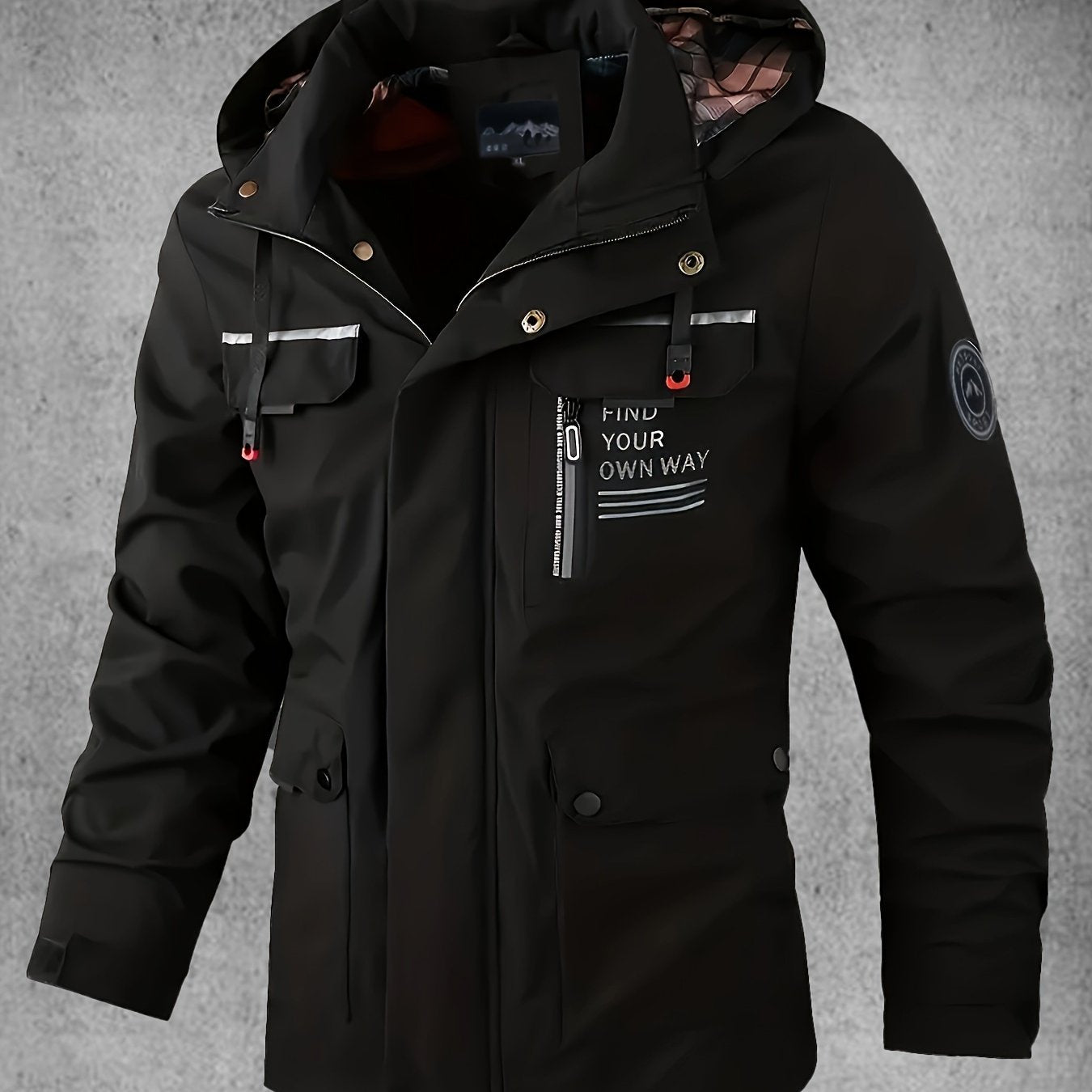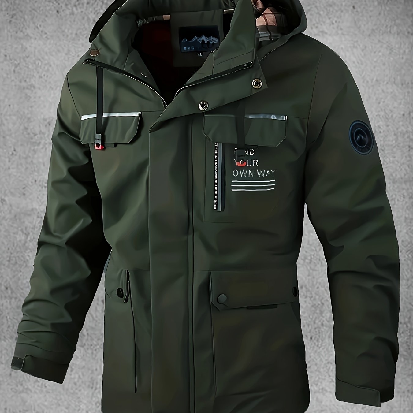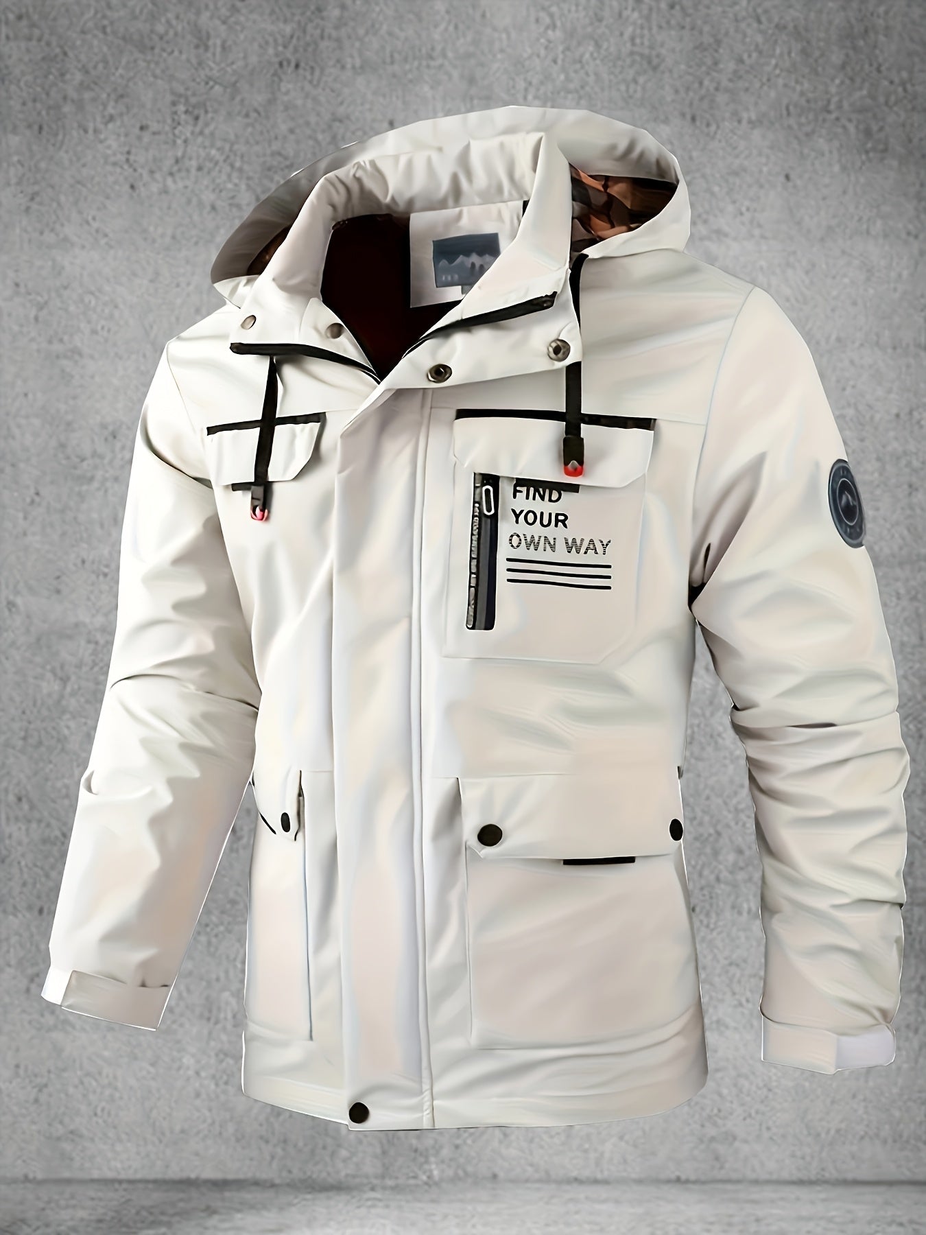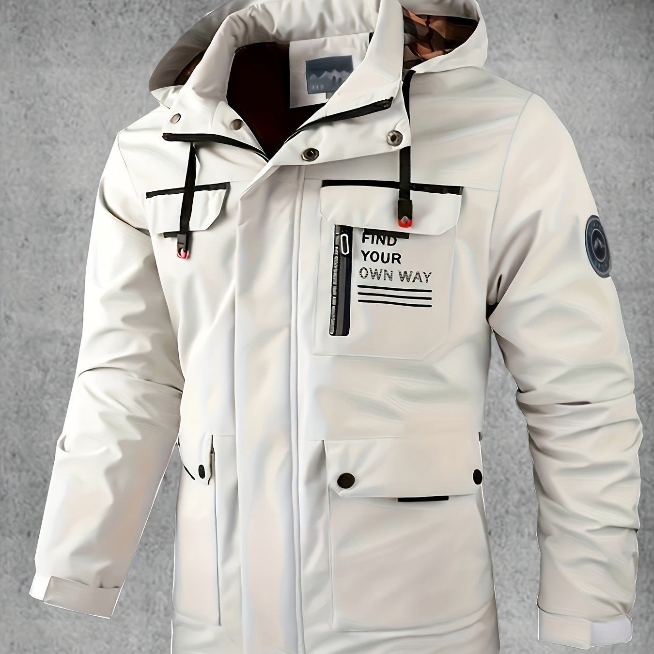 Yoz va kuzda ochiq havoda faoliyatlar uchun bir nechta cho'ntaklari bo'lgan kapuchonli yumshoq qoplama kurtka.