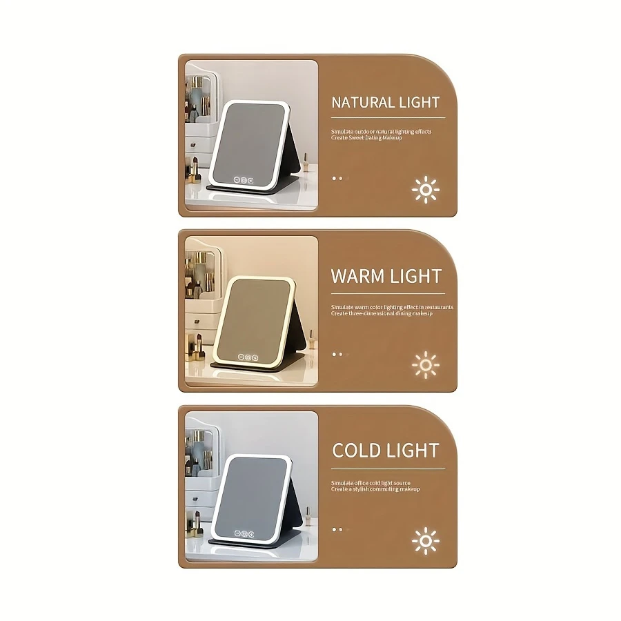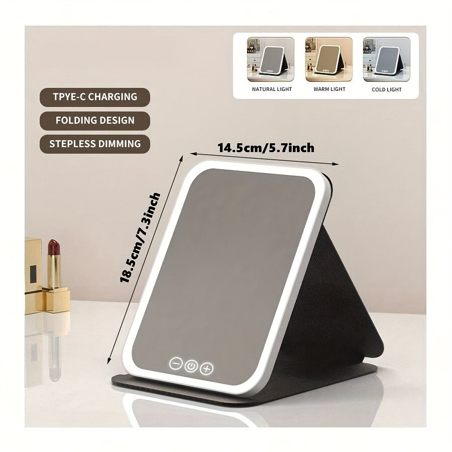 HOTU Portativ Makiyaj Oyna, Yoritish uchun 3 Rang, Dimmerli Sensorli Ekran, Zaryadlanadigan LED Oyna