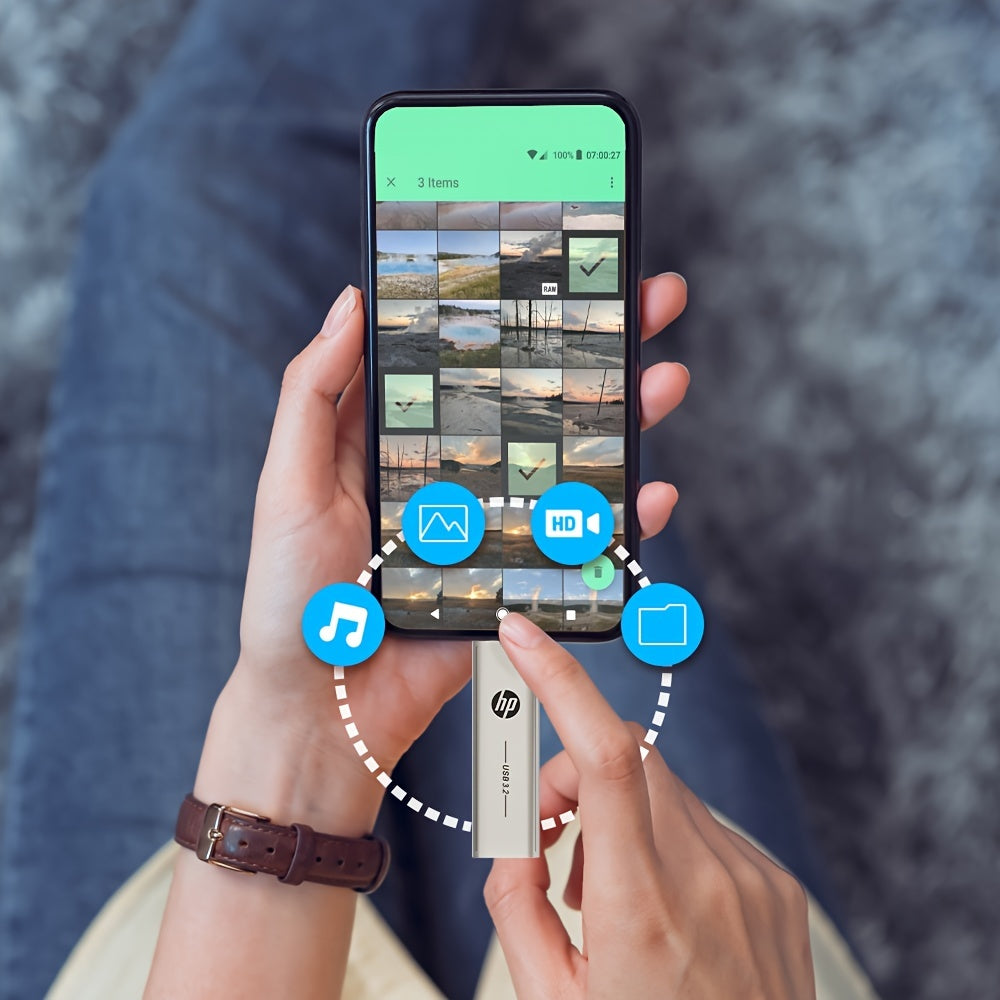 HP USB Type C Flesh xotira 64GB/128GB/256GB sig'im bilan, yuqori tezlikda va OTG qurilmalari uchun haqiqiy sig'im.