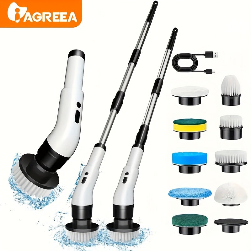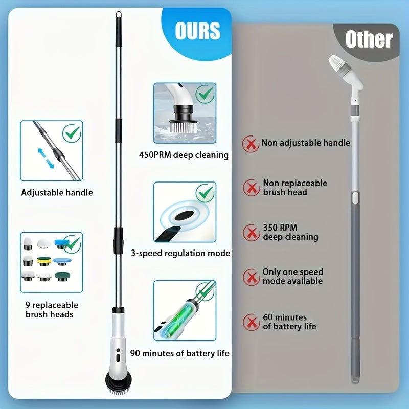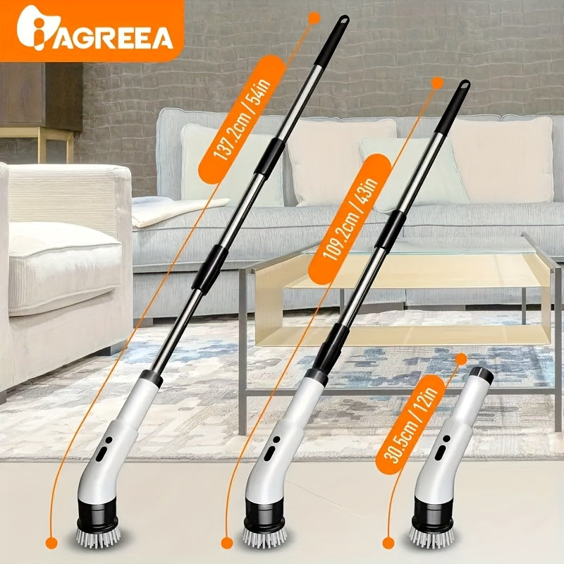 3 tezlikli simsiz elektr spin scrubber, teleskopik tutqich va almashtiriladigan cho'tka boshlari bilan, plitka, vanna, lavabo va devor tozalash uchun
