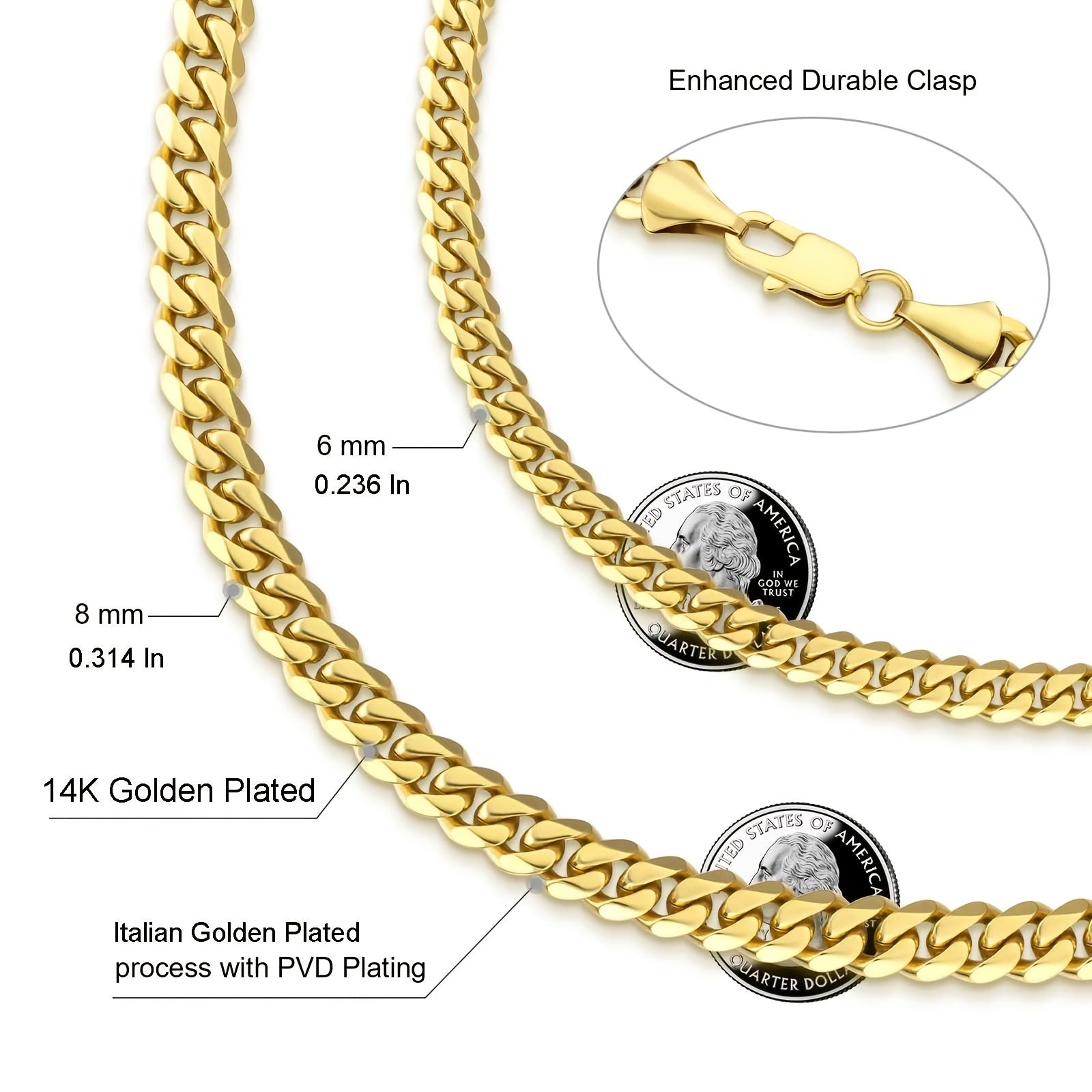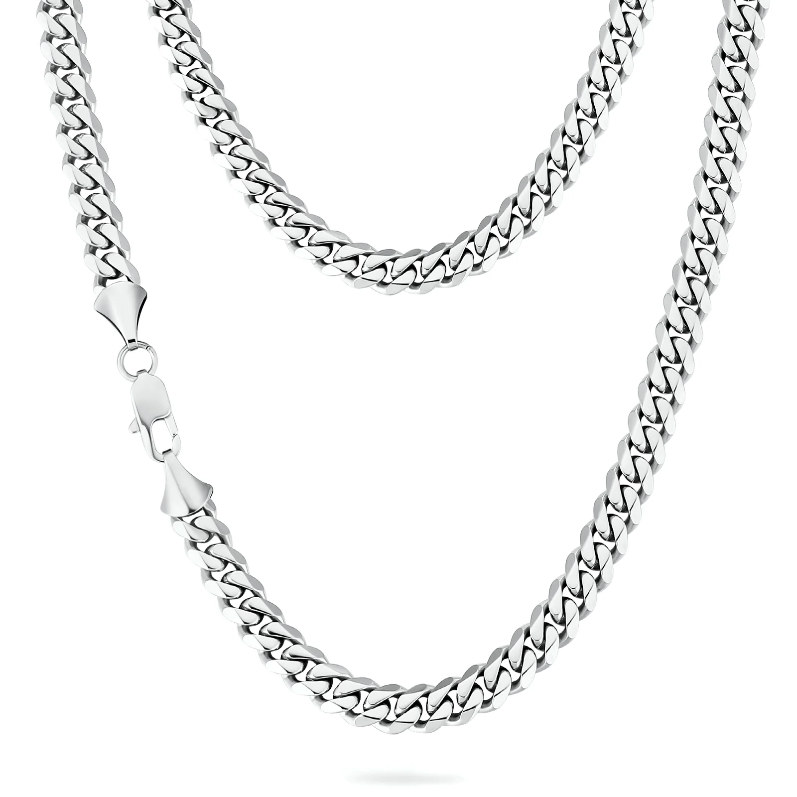 8mm zanglamaydigan po'lat Miami Cuban zanjiri, taqlidiy olmos kesilgan, 6 tomonli taqinchoq