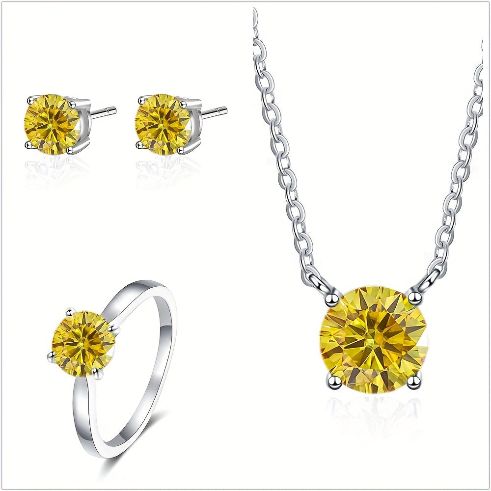 Люкс Мойсанит бижутерияси тўплами 2ct сариқ ожон, кулон, оёқбосма, сақич, стерлинг олтин