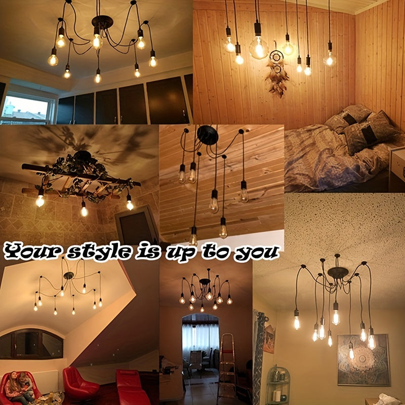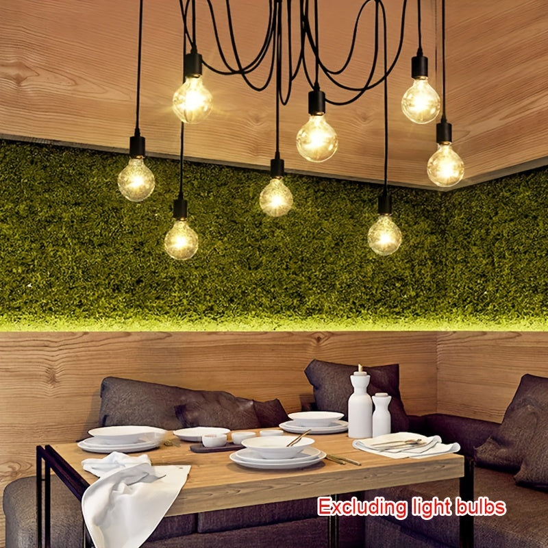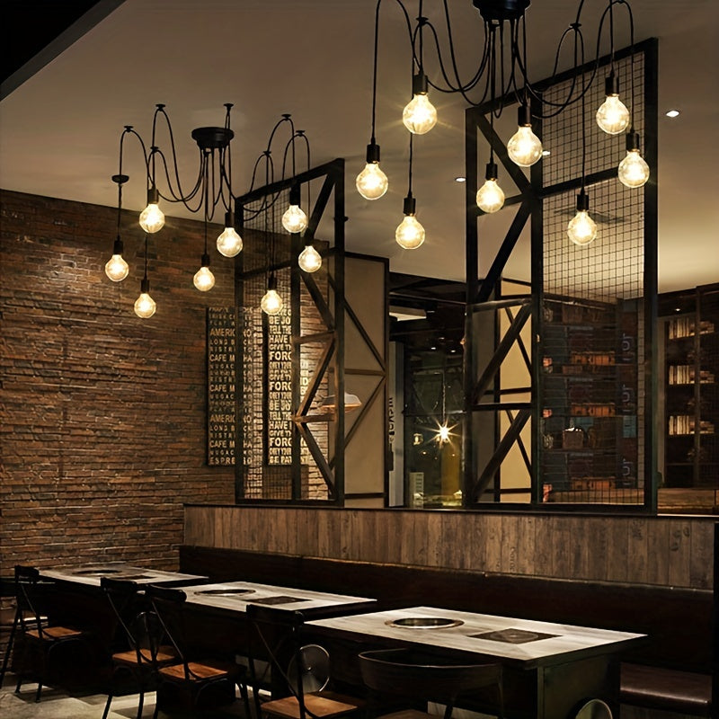 Sanoat uslubidagi ovqatlanish chandeli, sozlanadigan DIY yoritish va bir nechta boshlar bilan. Antik klassik shiftga osilgan o'rgimchak lampasi.