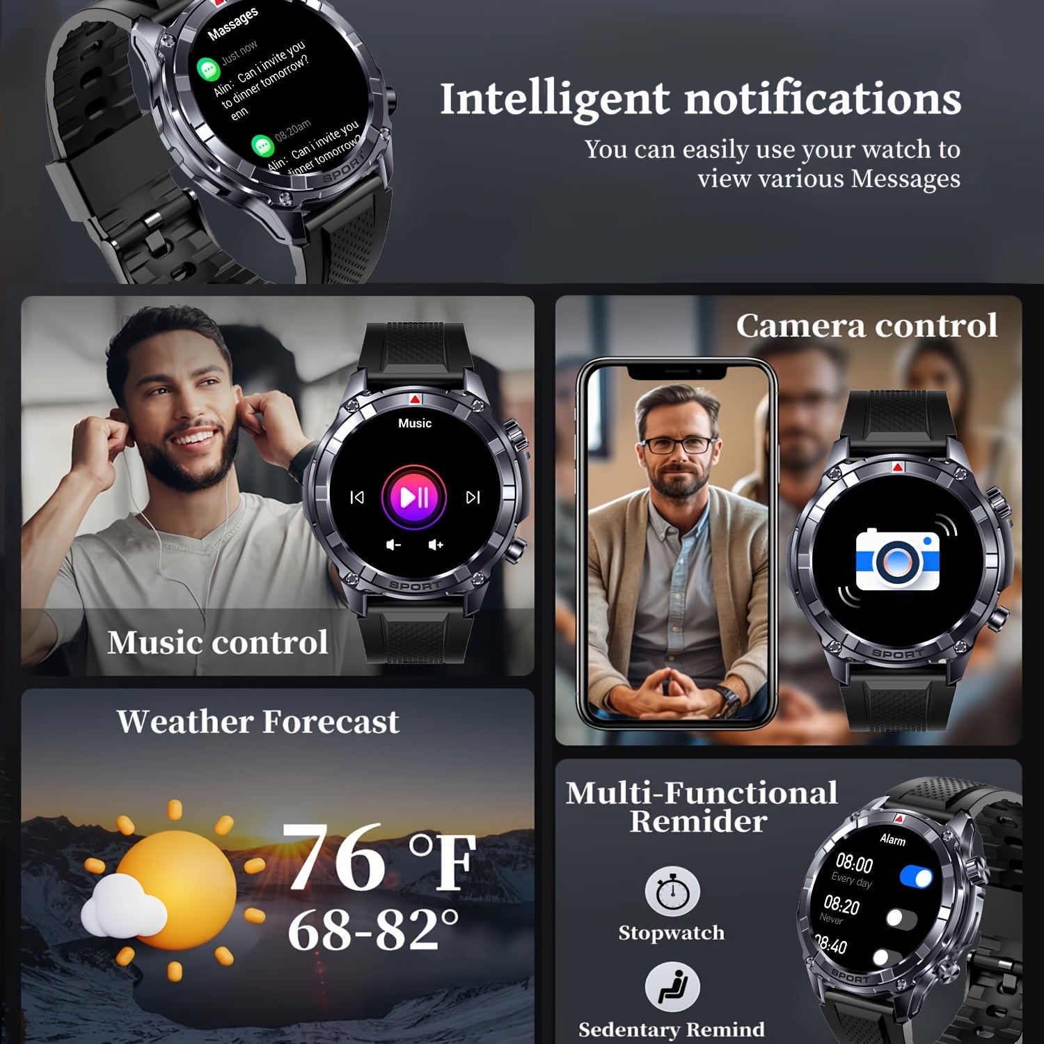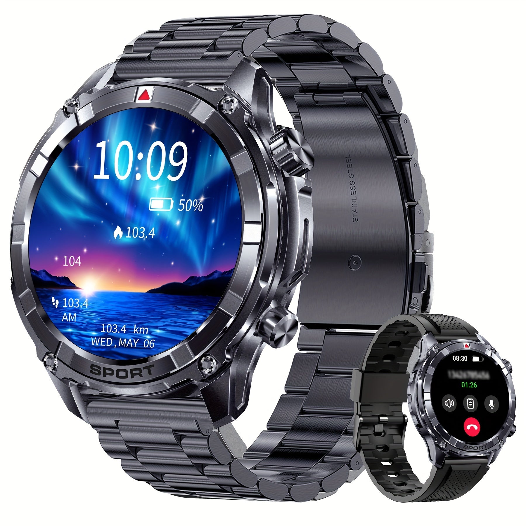 INNOFOVO erkaklar uchun aqlli soati 3.86 sm HD ekran, AI ovozli yordamchi, ob-havo prognozi, uyqu kuzatuvchisi, 100+ sport rejimi, simsiz qo'ng'iroq, zanglamaydigan po'latdan yasalgan tasma va USB zaryadlash imkoniyatlariga ega.