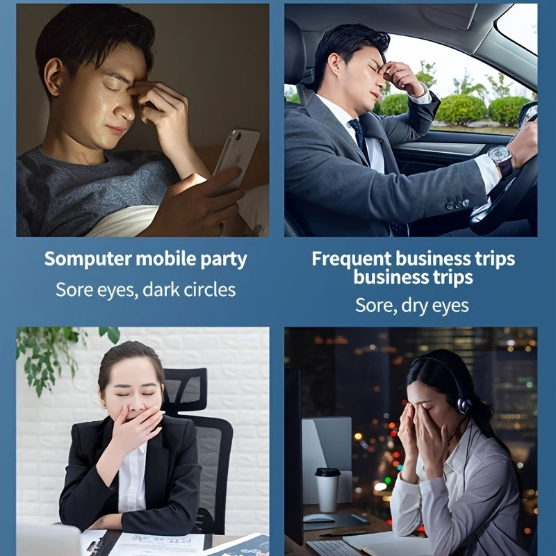 4 rejimli aqlli qayta zaryadlanadigan ko'z massajchisi, USB zaryadlash, og'riqli, quruq ko'zlar uchun portativ yengillik.