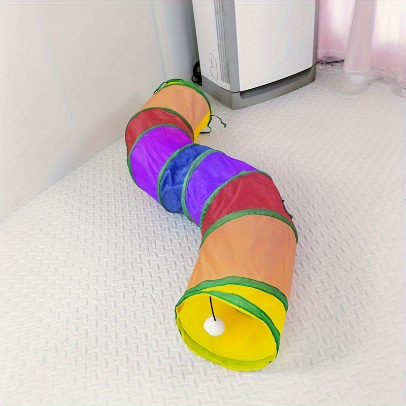 Qaytib olinadigan mushuk tunelida to'p bilan interaktiv mushuk o'yinchoqi, cheksiz qiziqarli o'yinlar uchun