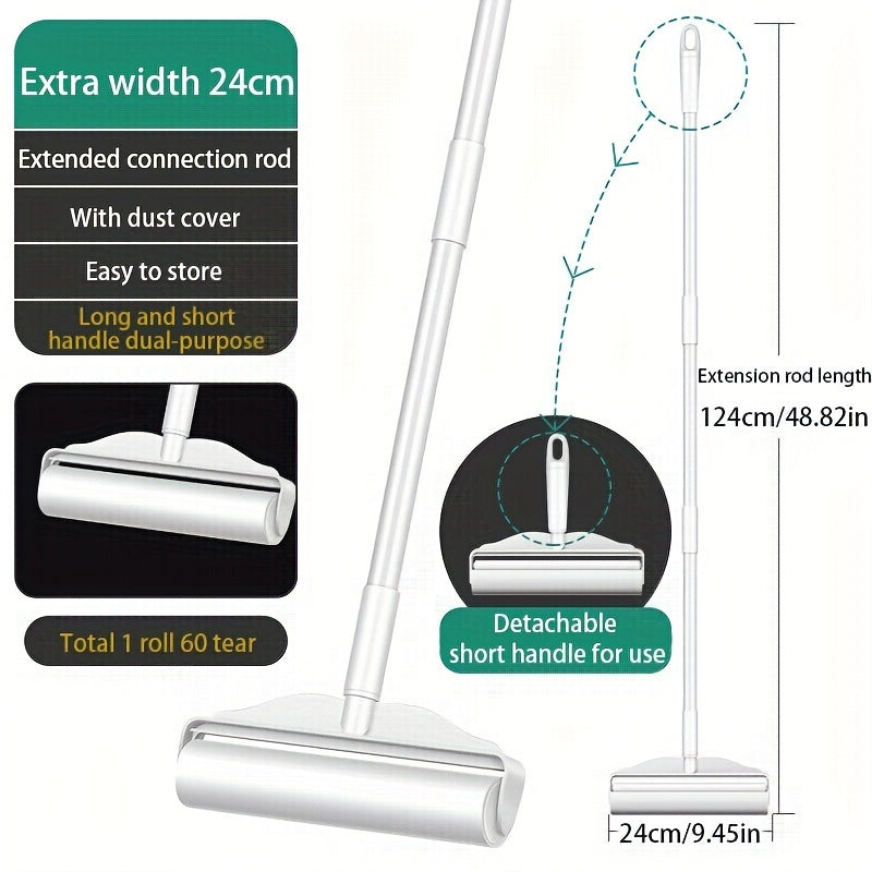 Katta hajmli qayta ishlatiladigan tolalarni tozalash ruloni to'plami, 2 ta rulon va chang qopqog'lari bilan, jun va axlat uchun