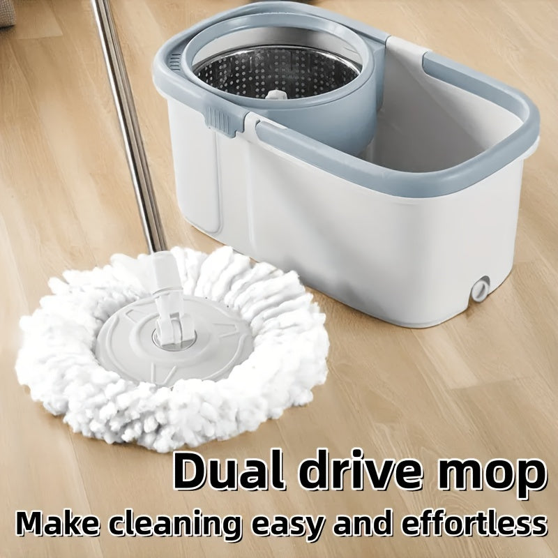 Polni tozalash uchun zanglamaydigan po'latdan yasalgan tutqich bilan ikkilik aylanuvchi mop va kova to'plami