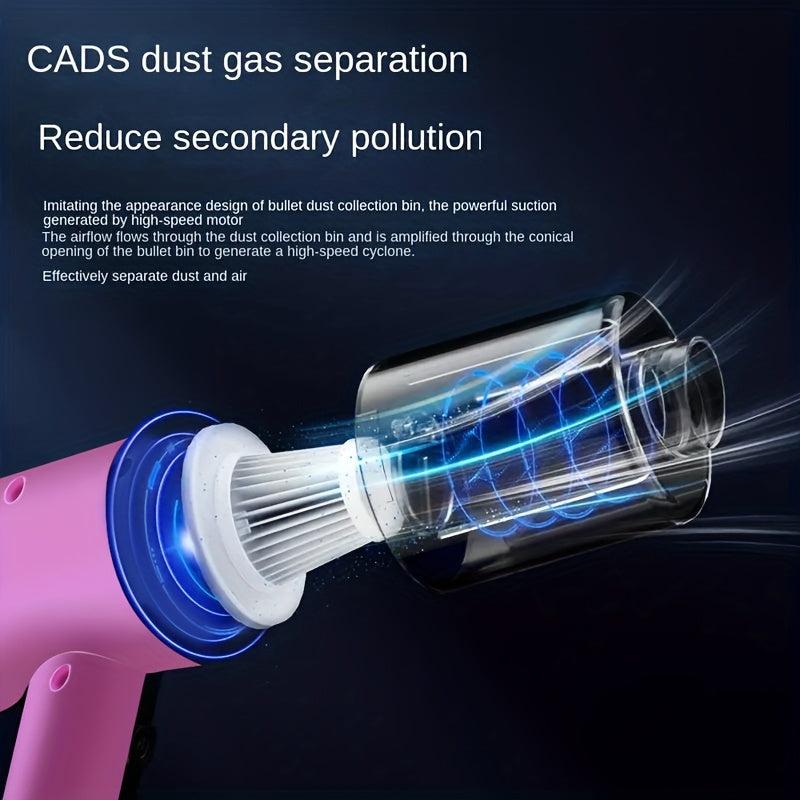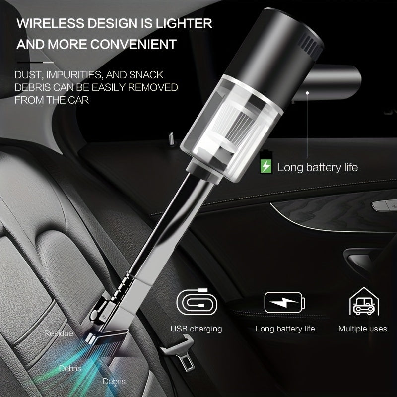 Kabelsiz qo‘l bilan cho‘miladigan changyutgich, kuchli tortish, USB bilan quvvatlanadigan, 2000mAh batareya, avtomobil va uy tozalash uchun bo‘lak asbob