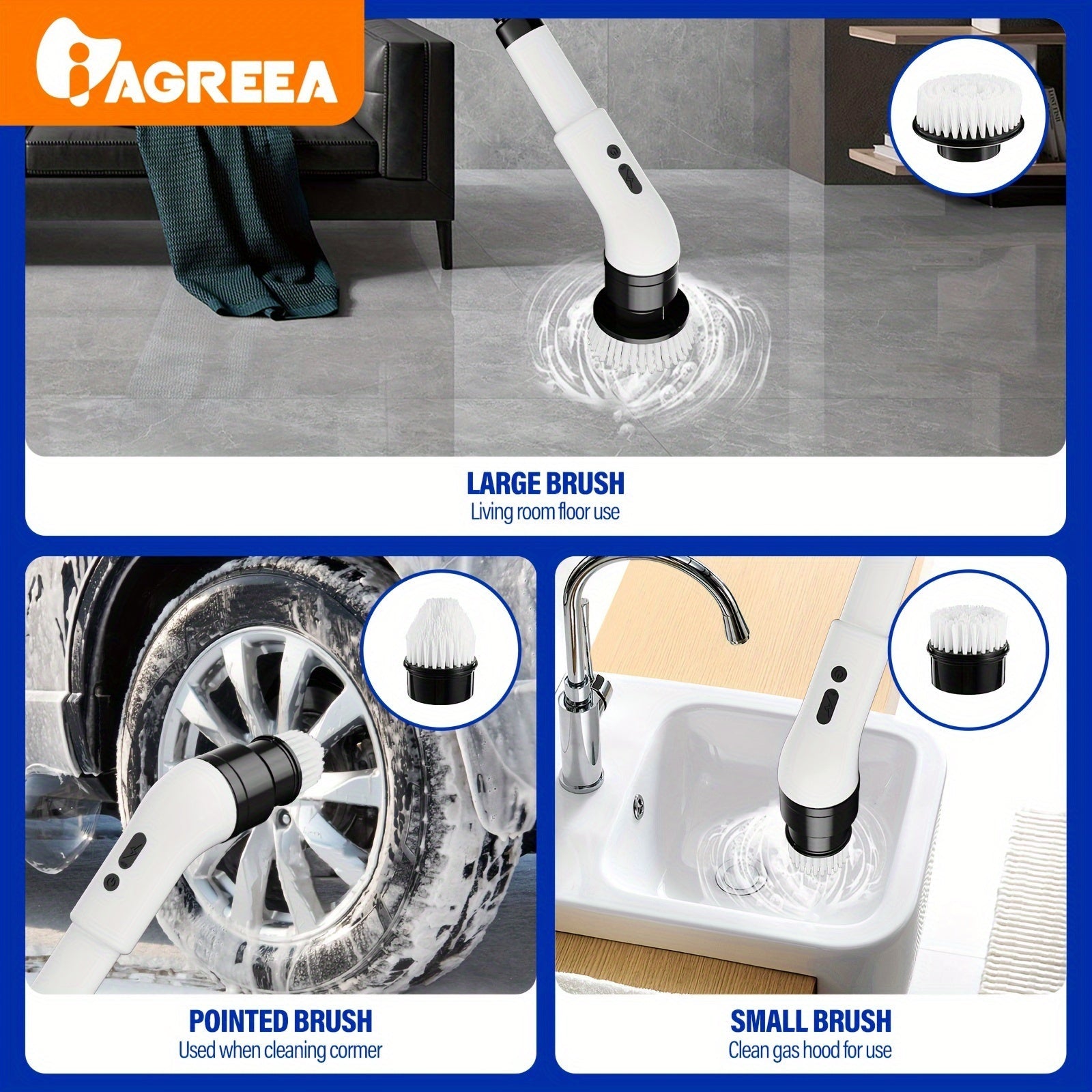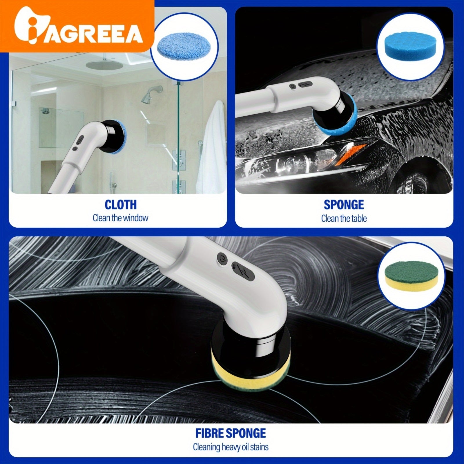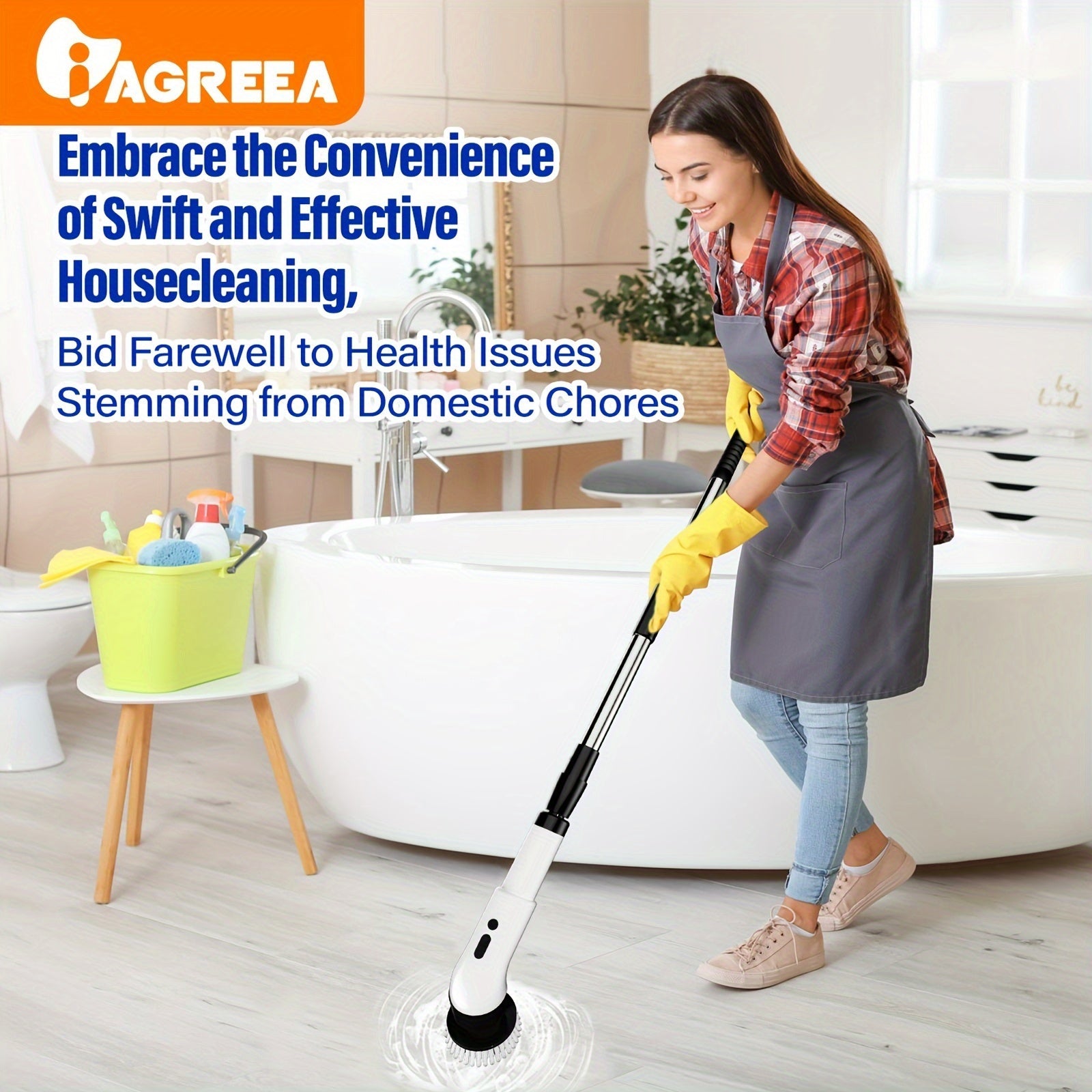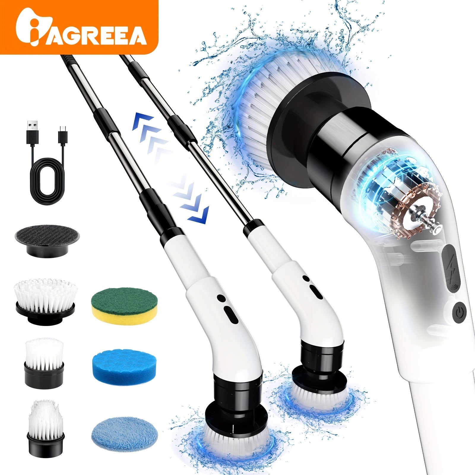 3 tezlikli, almashtiriladigan cho'tka boshli, sozlanadigan tutqichli elektr aylantiruvchi kir yuvish mashinasi uchun plitka tozalash