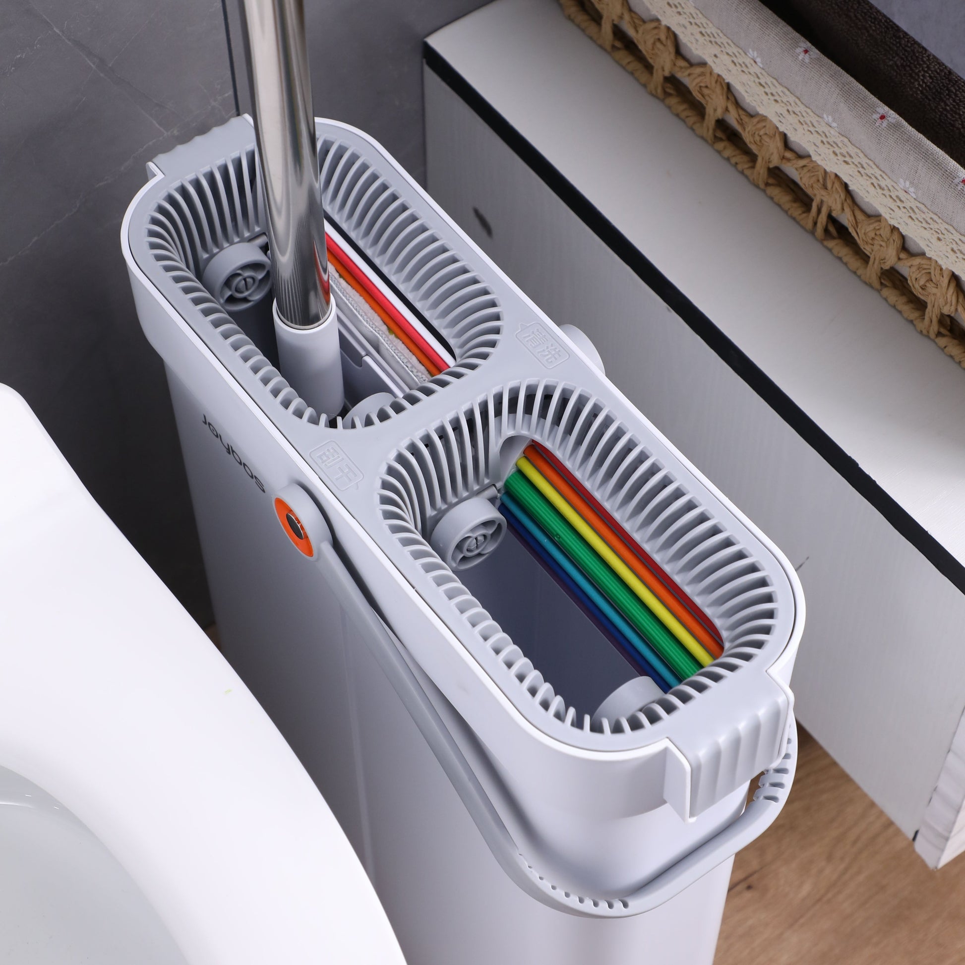 Joybos tekis mopu va chelakni taqdim etamiz - O'z-o'zini siqish tizimidan, 180° aylanuvchi boshdan, zanglamaydigan po'lat tutqichdan, 4X qirqishdan foydalaning va qo'l bilan yuvishdan xayrlashing - Har bir xonangiz uchun ko'p funksiyali tozalash mopu!