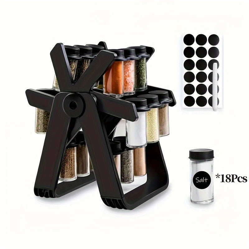 18 ta ziravor bankasi va shisha shisha idish uchun 360° aylanadigan ziravorlar qutisi