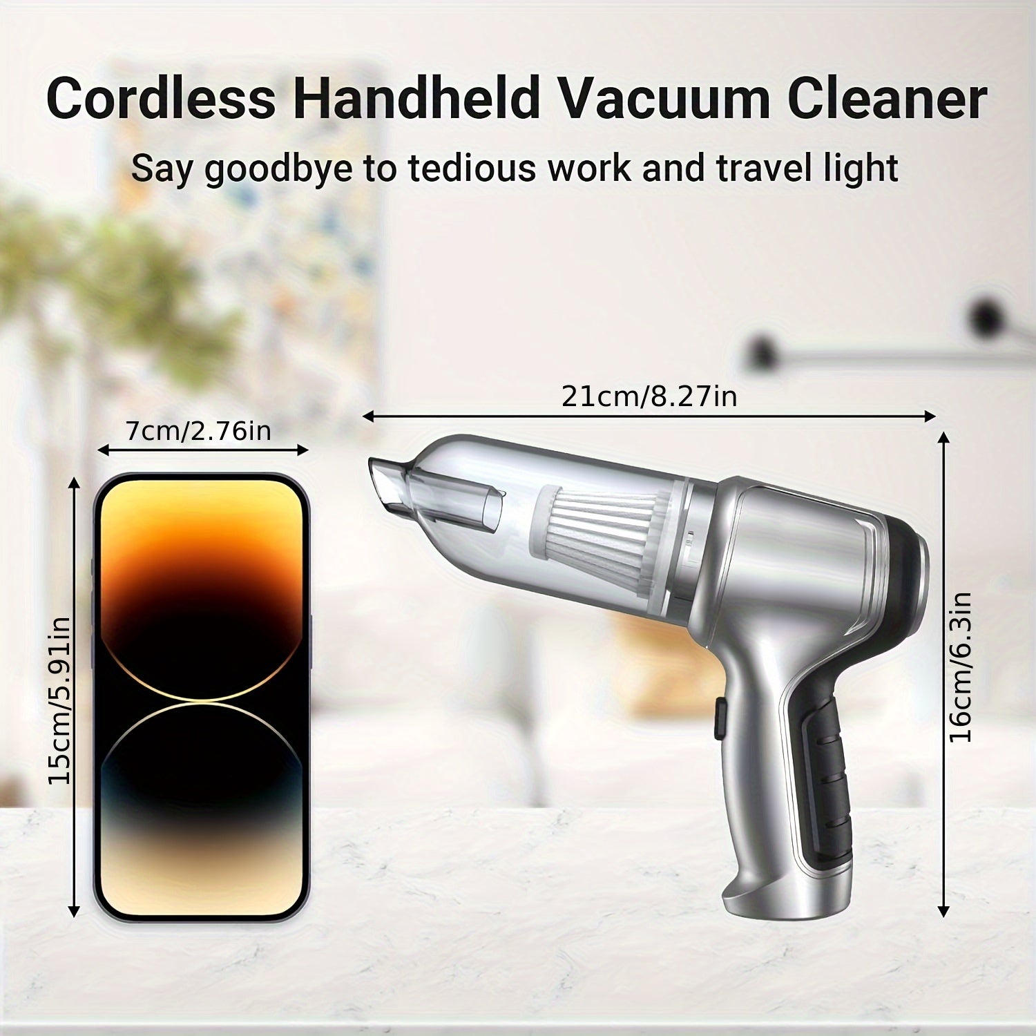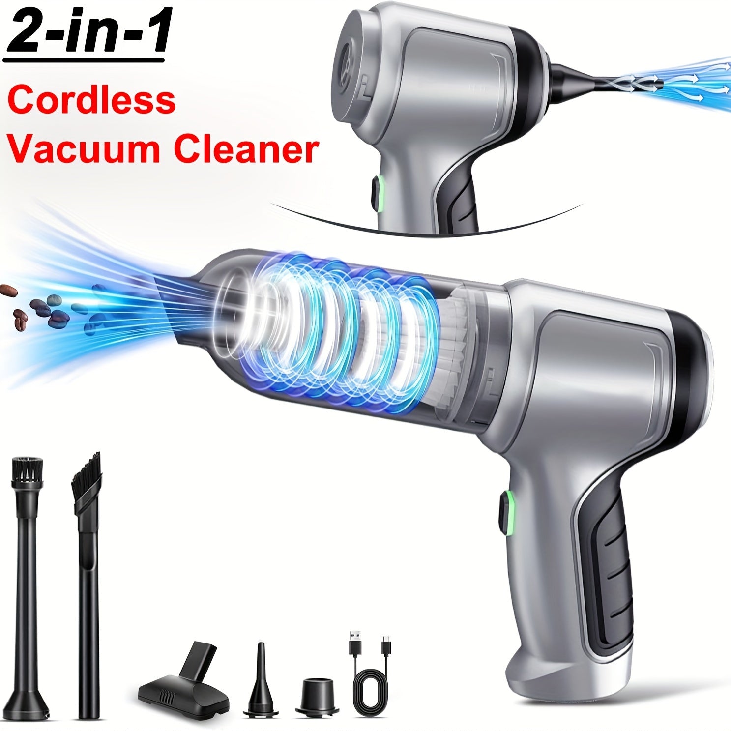 Qurilmali qo‘l bilan ishlash uchun quvvatli quruq va nam tozalash uchun portativ changyutgich, qayta zaryadlanuvchi batareyali