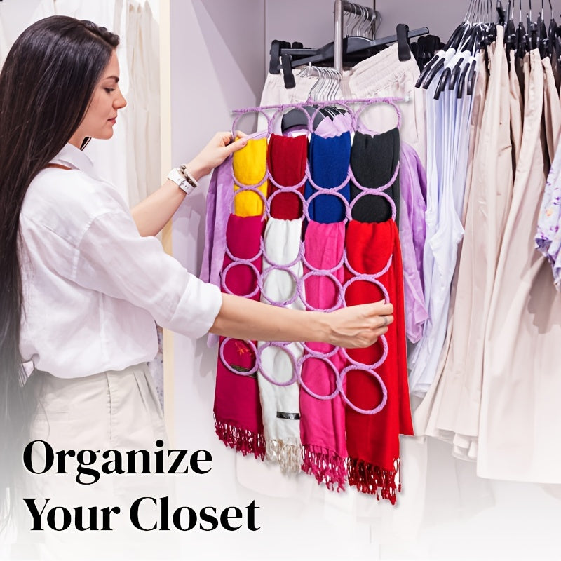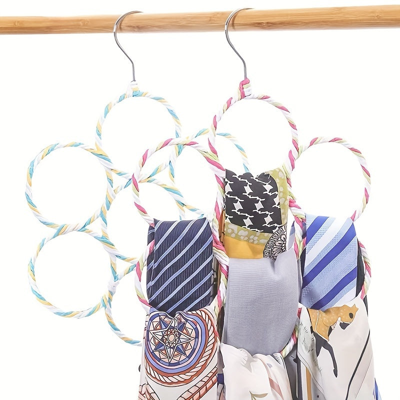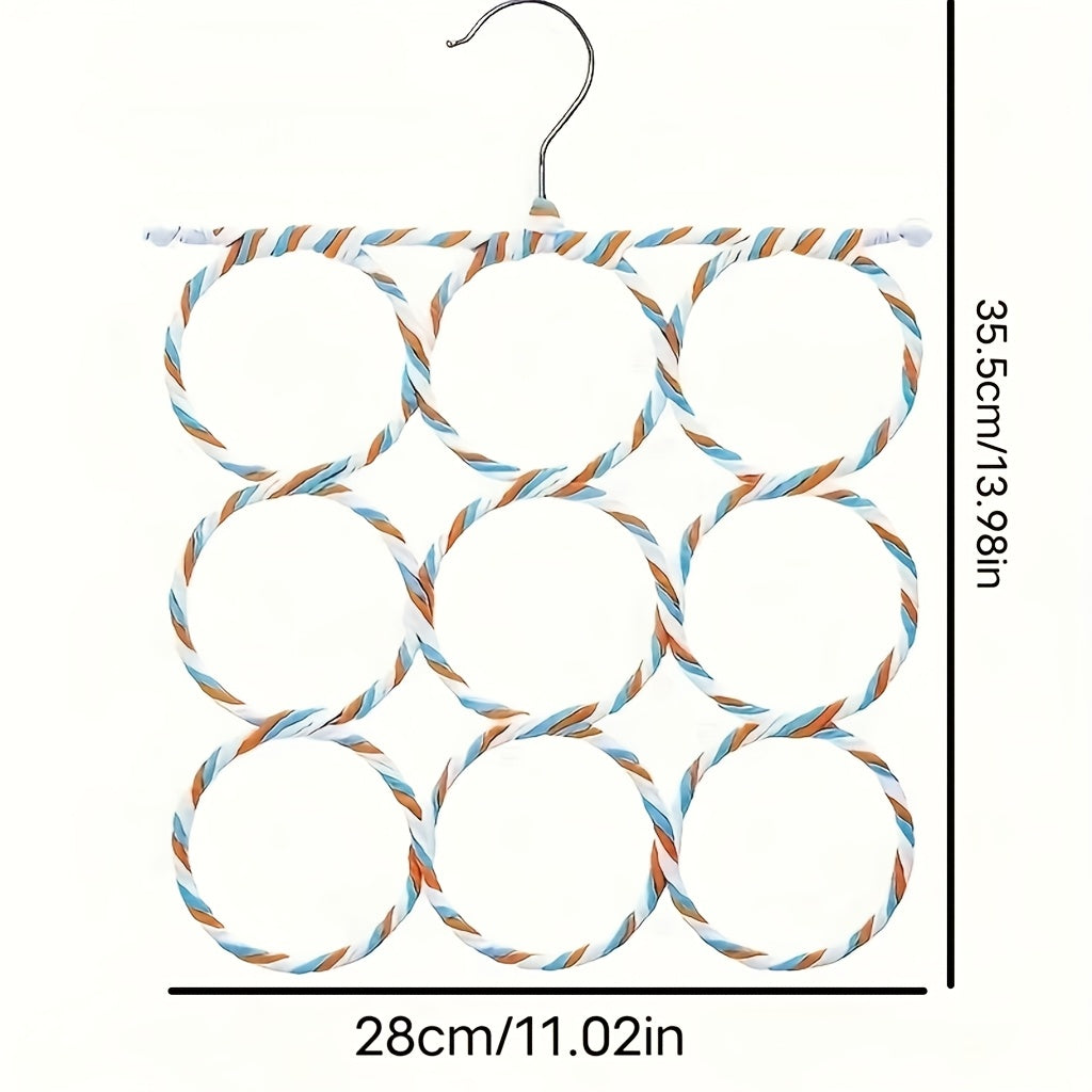 Ko'p rangli rattan qog'oz halqalar bilan temir doira sharf tutgichi, bog'lamlar va sharflarni tartibga solish uchun