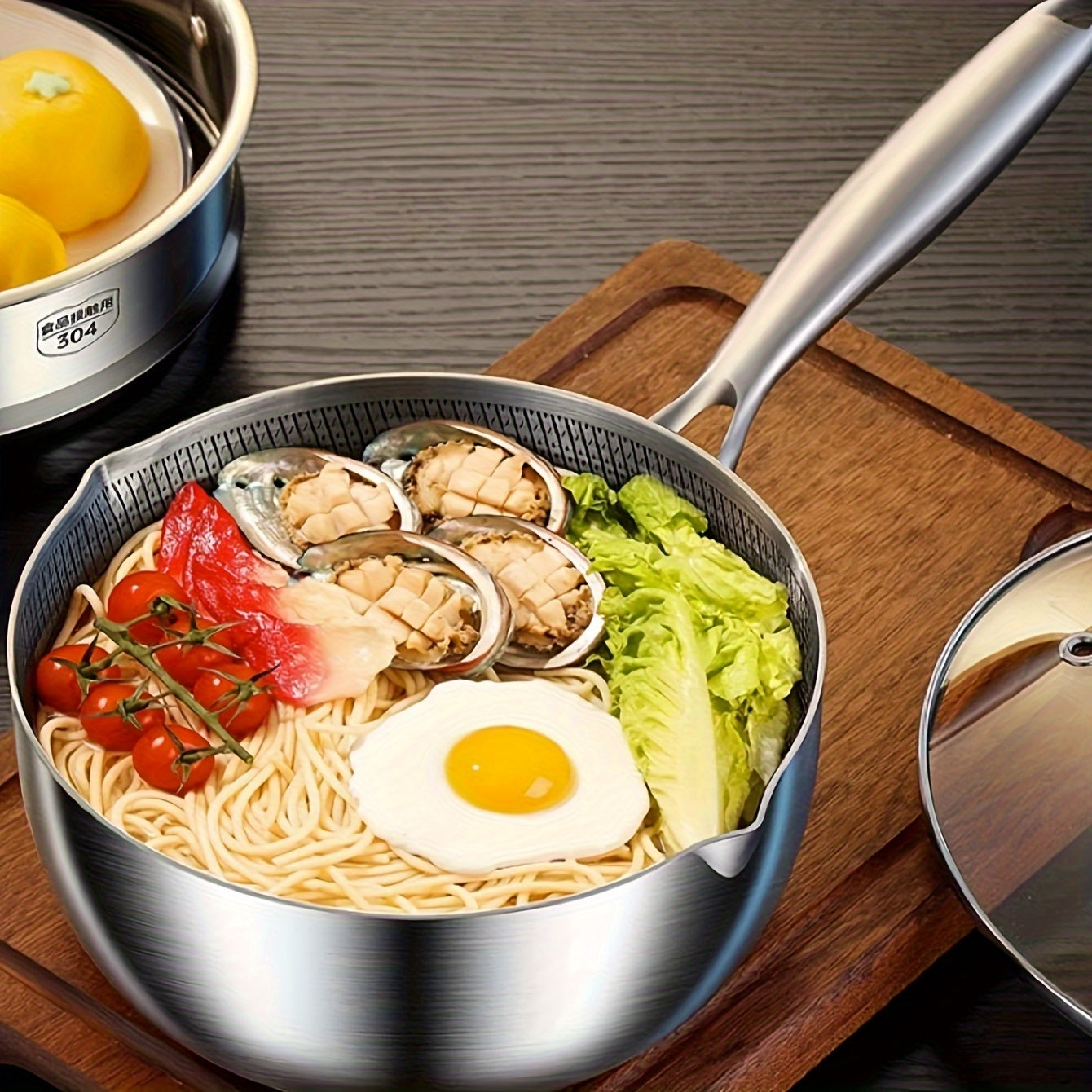Yaponcha ilhomlangan zanglamas po'latdan yasalgan qozon, yopishqoq qoplama bilan – Yoshlar ovqatini va makaronni tayyorlash uchun ideal, idish-tovoq tozalash mashinasida yuvish mumkin