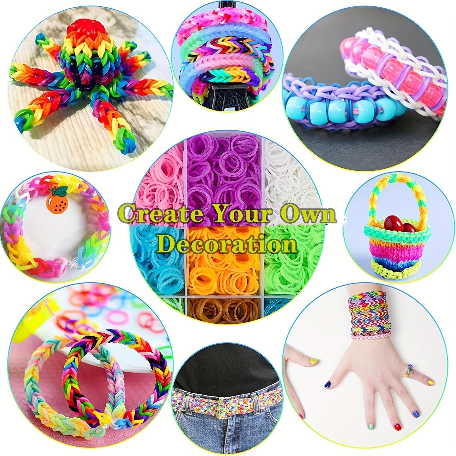 Bolalar uchun zargarlik buyumlari qilish to'plami, rang-barang silikon bantlar va bilaguzuklar, soatlar va poyabzal uchun saqlash bo'linmalari bilan