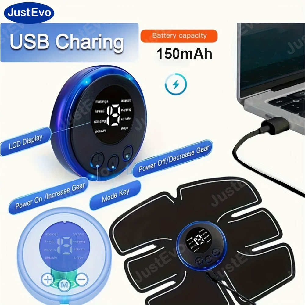 JustEvo EMS qorin massaj yamoqi qo'llar, oyoqlar va qorin uchun ko'p funksiyali fitnes qurilmasidir, u uyda, sayohatda yoki ofisda mashq qilish uchun ideal bo'lib, sizning fitnes sayohatingiz uchun mukammal tanlovdir.