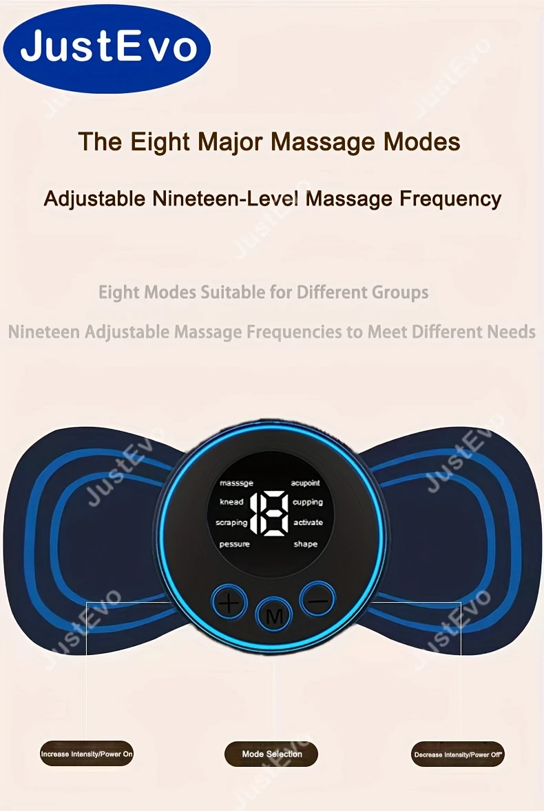 JustEvo portativ mini massaj yamoqi, to'liq tana mushaklari va fasiyalarini bo'shatuvchi USB orqali zaryadlanadigan batareyaga ega, 36V dan kam ishlash voltaji bilan yelka, bo'yin va butun tana massajlari uchun ideal.