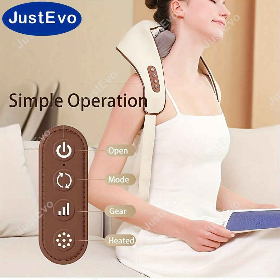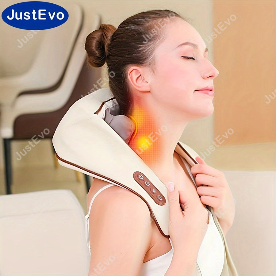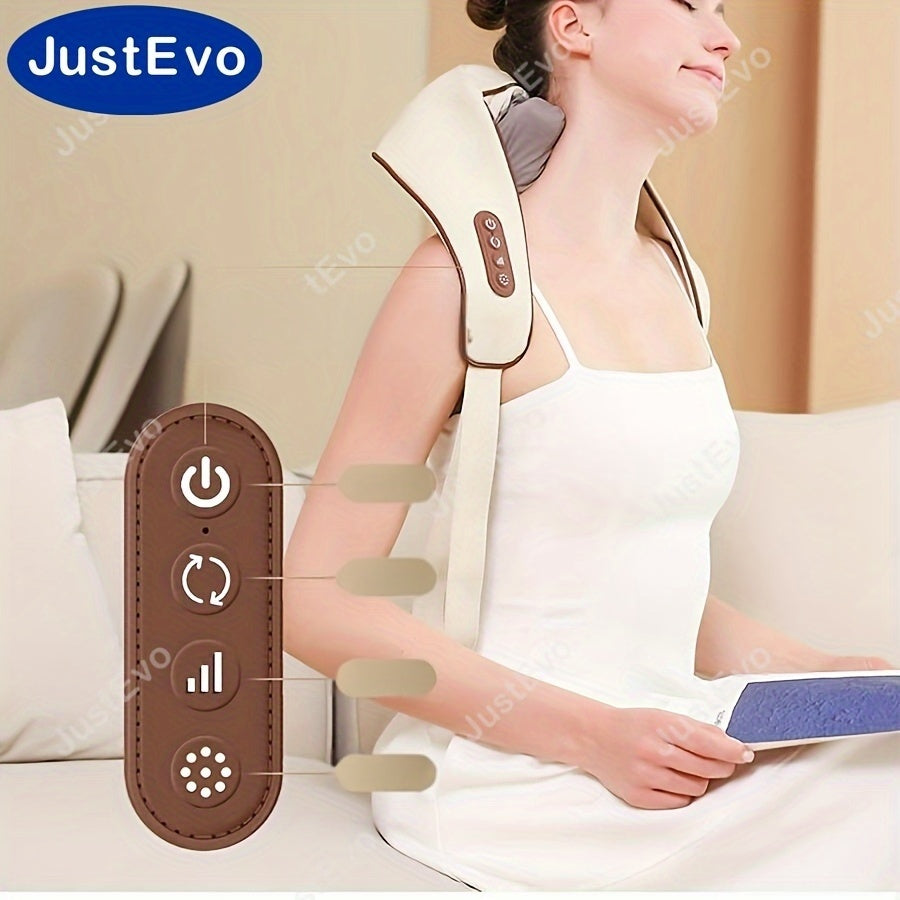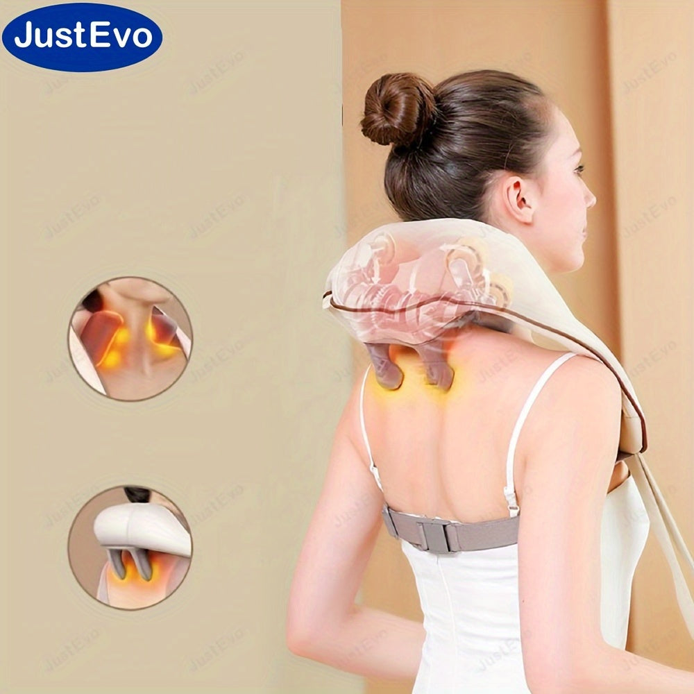 JustEvo USB orqali zaryadlanadigan to'liq tanali massajchi, 1800mAh litiy polimer batareyasi bilan - bo'yin, bel va yelkalarga moslashtirilgan.