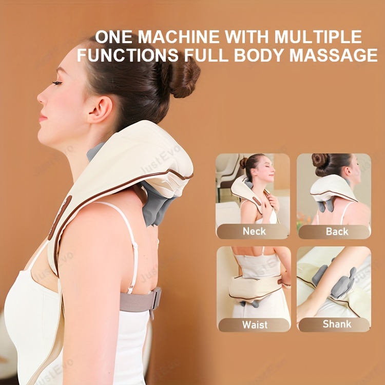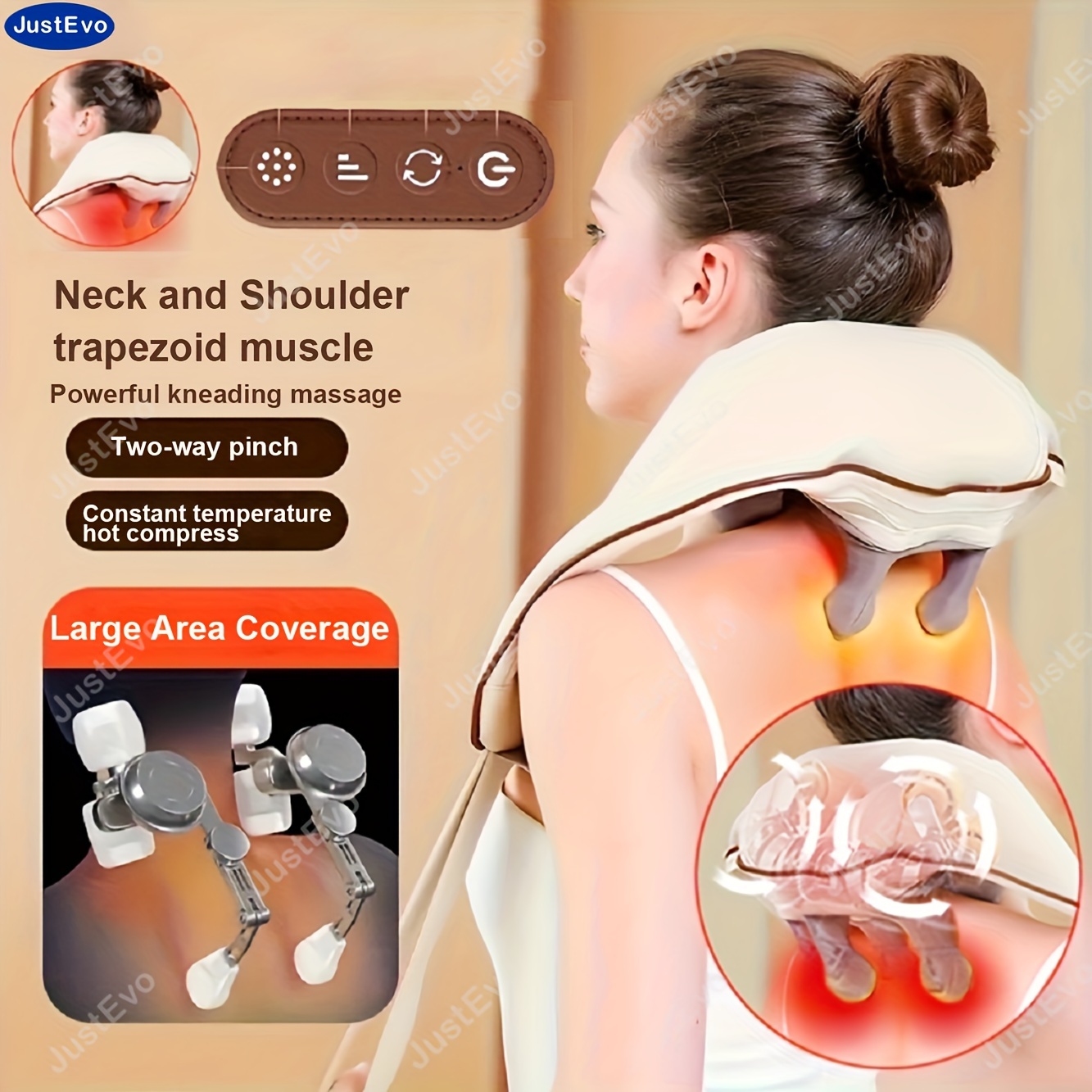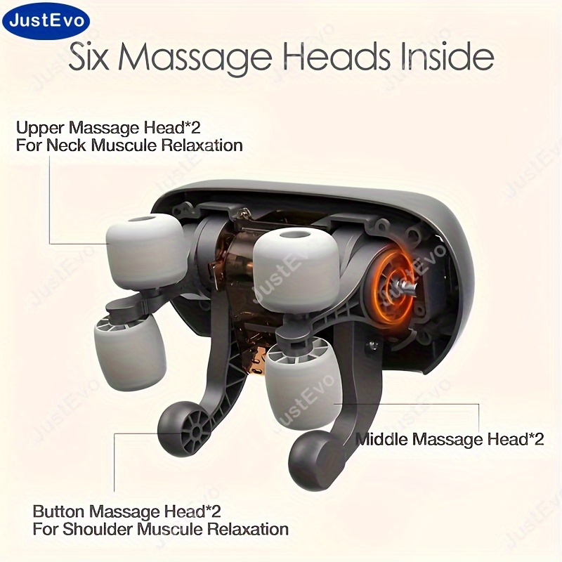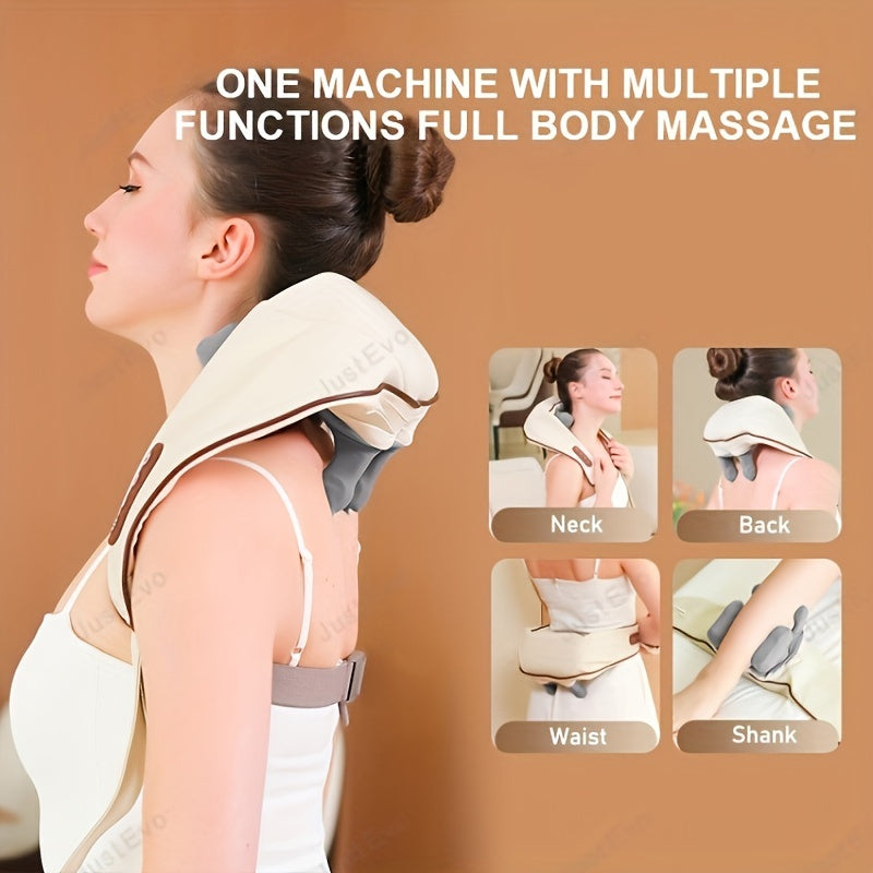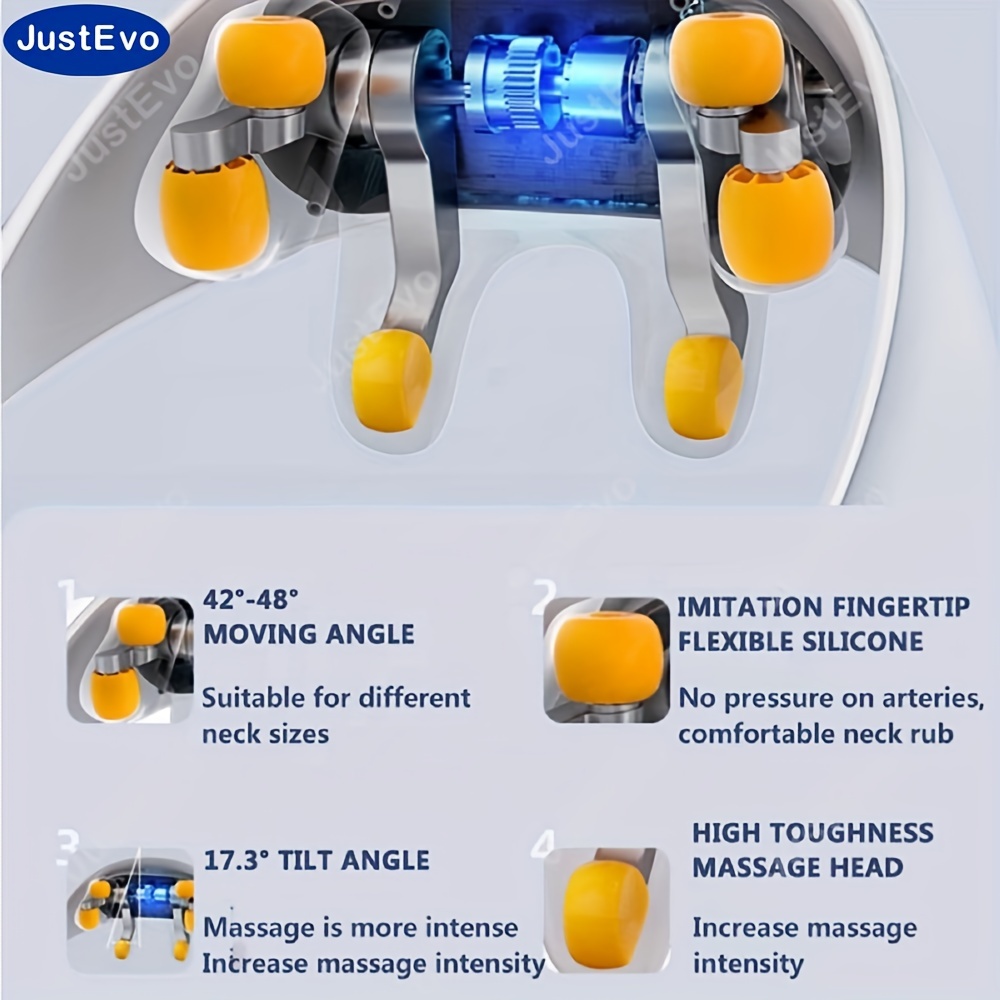 JustEvo USB orqali zaryadlanadigan to'liq tanali massajchi, 1800mAh litiy polimer batareyasi bilan - bo'yin, bel va yelkalarga moslashtirilgan.