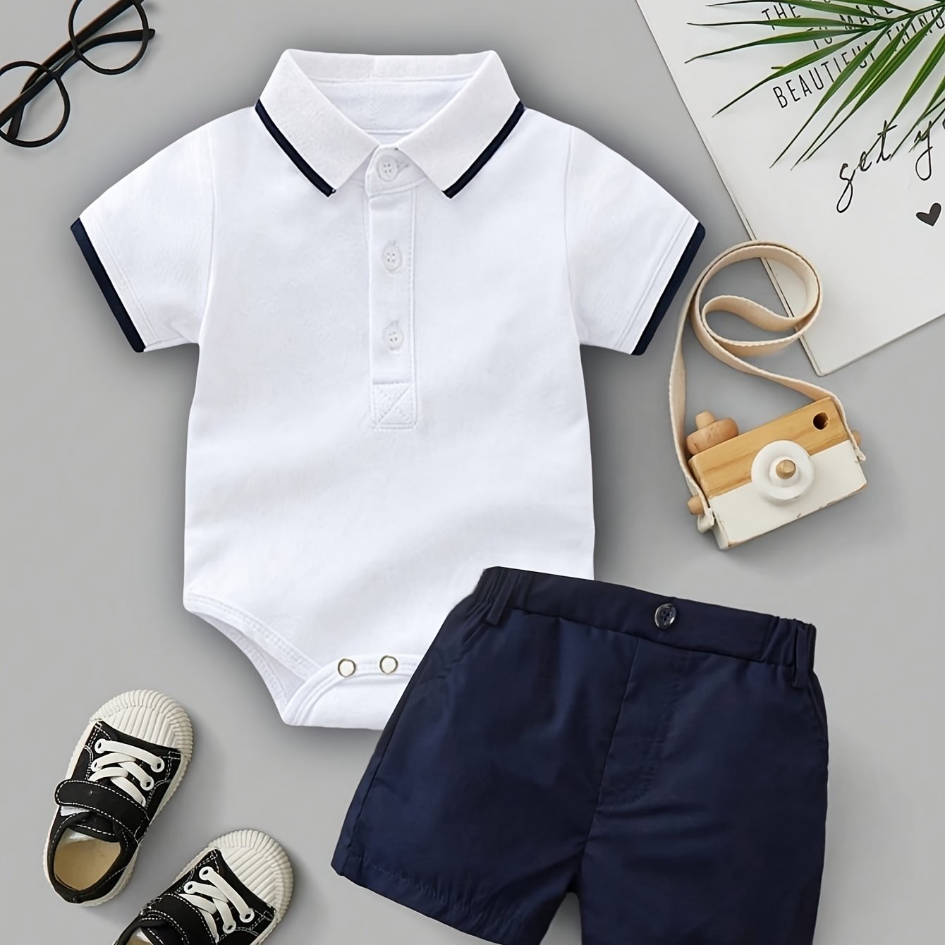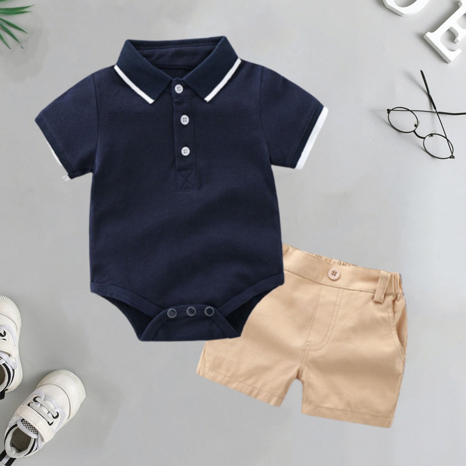 Yigitlar uchun paxta polo kofta va shortlar to'plami, bolalar va kichkina yoshdagi bolalar uchun, bahor yoz, oddiy rang