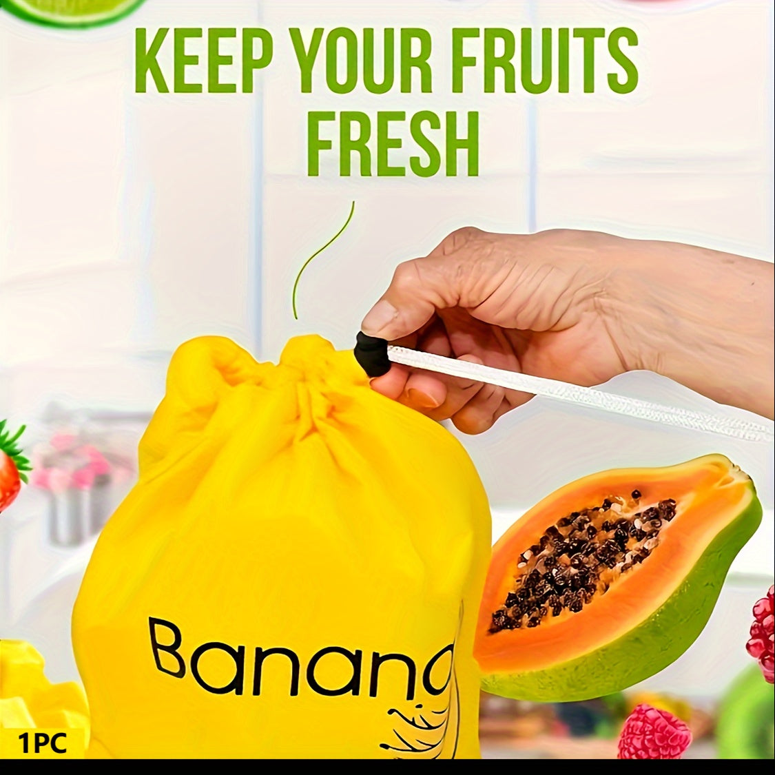 Bu oziq-ovqat darajasidagi naylondan tayyorlangan, mustahkam alyuminiy yopqichi va qo'shimcha kuch uchun ikki marta tikilgan yuqori sig'imli saqlash sumkasi bilan bananlaringizni bir hafta davomida yangi saqlang.