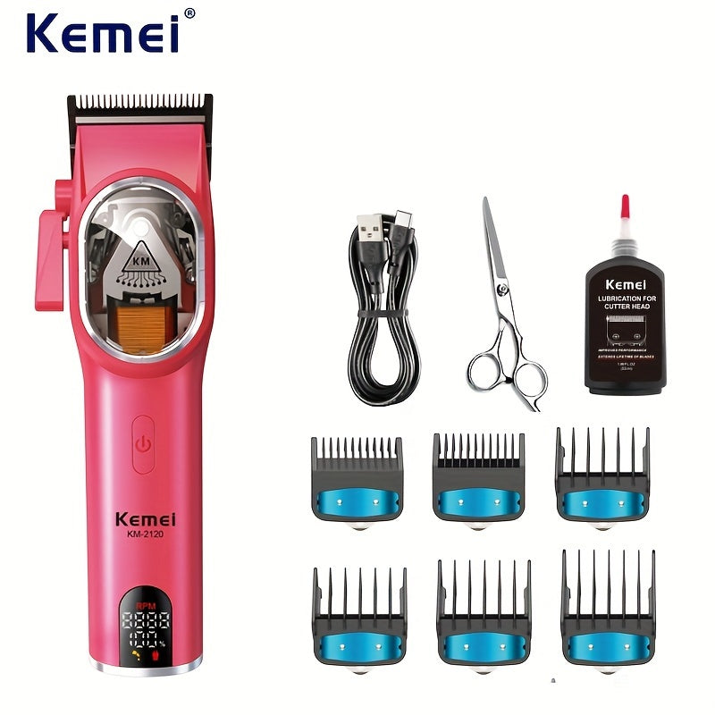 KEMEI Pink Hair Clipper DLC Blade bilan - Erkaklar uchun kuchli elektr trimmer, uzoq batareya muddati, USB bilan zaryadlash mumkin, LED displey, taroq, qaychi va tozalash asboblari bilan birga, zamonaviy dizayn uchun