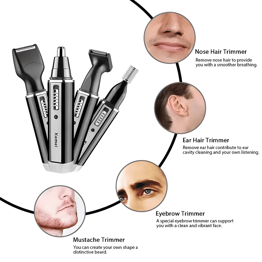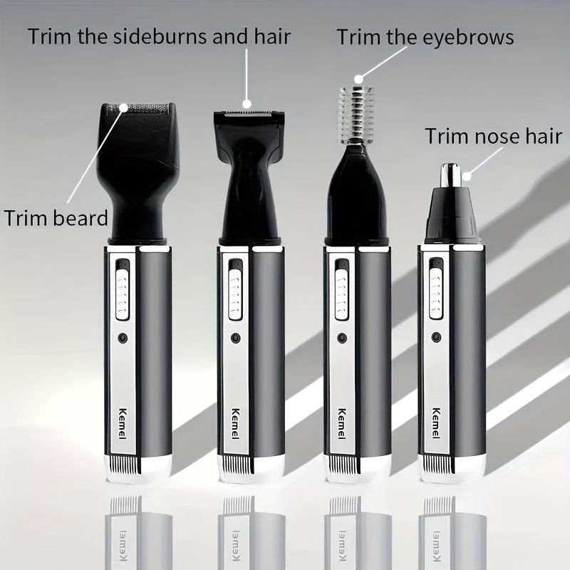 KEMEI Professional qayta zaryadlanadigan to'rt-in-bir burun sochlarini elektr qirqish mashinasi KM-6630, Pasxa sovg'asi.
