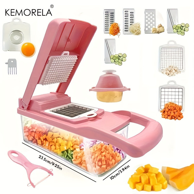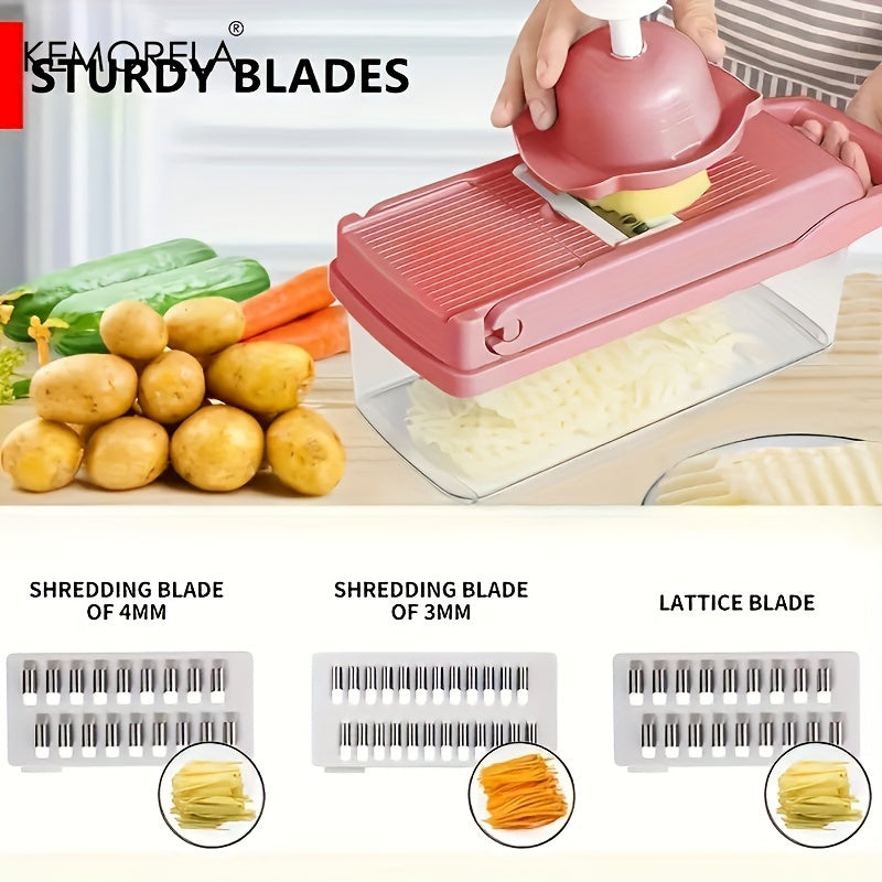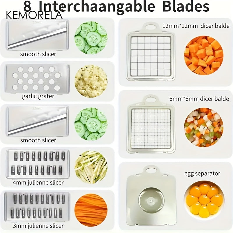 16-in-1 Sabzavot maydalagich, zanglamaydigan po'lat pichoq va maydalash uchun qo'shimchalar bilan
