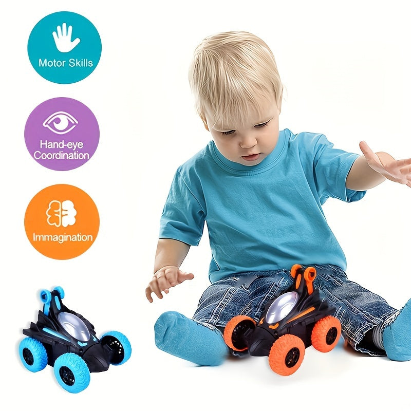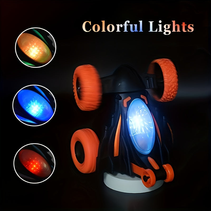 "Bolalar uchun 360-daraja aylanuvchi avtomobil o'yinchoq, chiroqlar va musiqa bilan, batareyada ishlaydigan plastikdan yasalgan, masofadan boshqarish pultiga ehtiyoj yo'q, o'g'il va qizlar uchun mos"