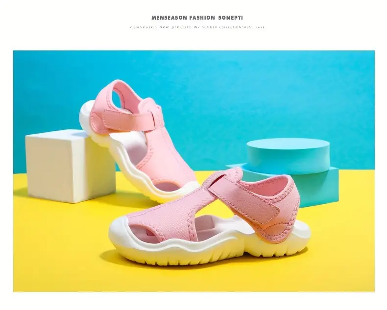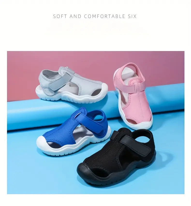 Bolalar uchun yoqimli multfilm sandallari - Moslashuvchan taglik bilan qulay, kiyish uchun oson tasma - Tashqi faoliyatlar uchun mukammal.