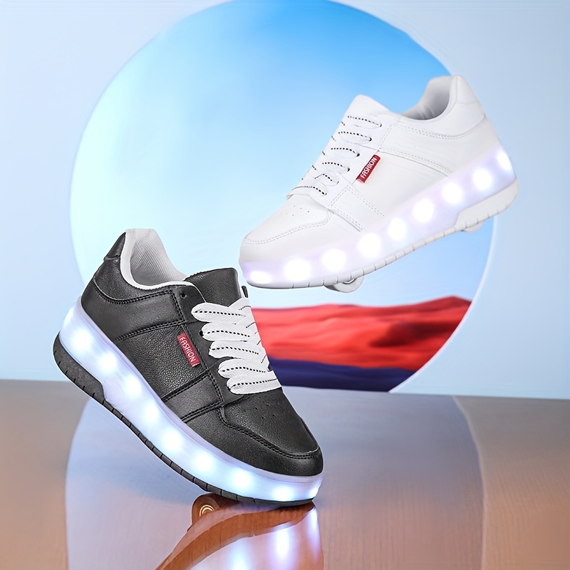 Bolalar uchun LED yoritilgan krossovkalar, oq rangda, ko'k/qizil/yashil chiroqlar bilan, nafas oladigan PU material, sozlanadigan tasma, sport va tasodifiy kiyim uchun ideal.