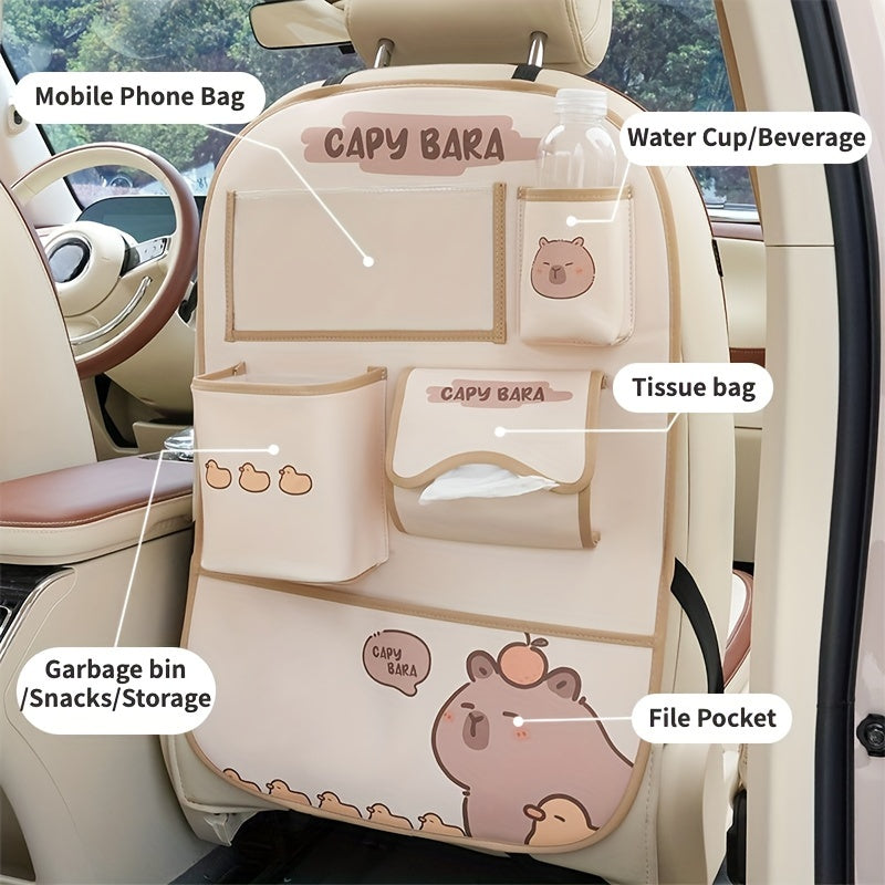 Bolalar uchun PU charm avtomobil o'rindigi tashkilotchisi, tishli tutqich va axlat qutisi bilan