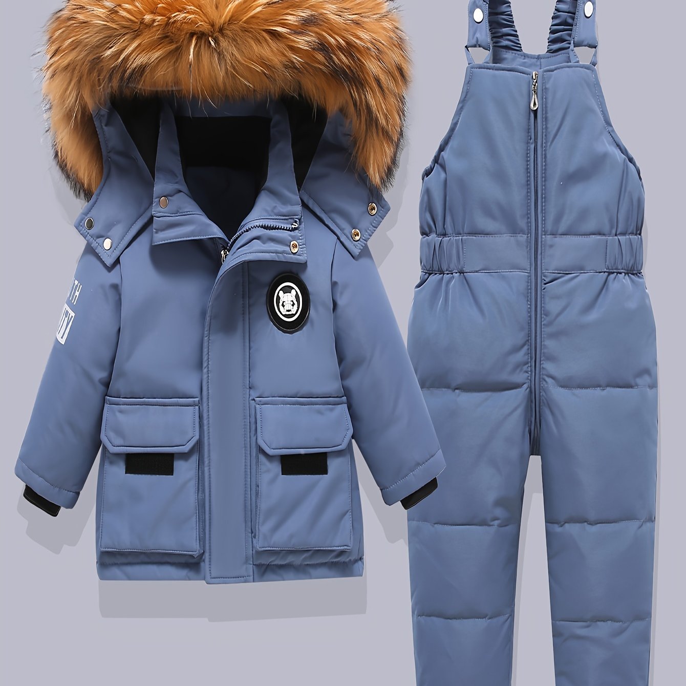 Bolalar Qish 2 ta qismli to'plami: Qizlar uchun kaputli pastki kurtka va pushti shimlar, o'rdak jun bilan to'ldirilgan, odatdagi moslik, cho'zilmaydigan polyester, to'qilgan mato, ochiq havoda faoliyatlar uchun ideal.