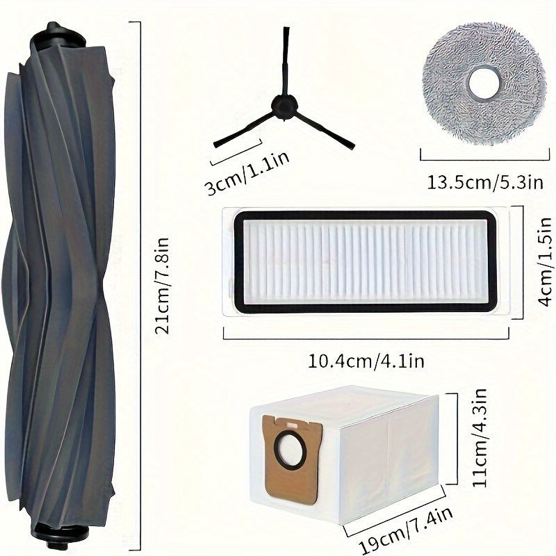 Robot tozalash qurilmasi uchun 9 ta qismlik almashtirish detallar to'plami, asosiy cho'tka, yon cho'tkalar, mop mato, chang qoplari