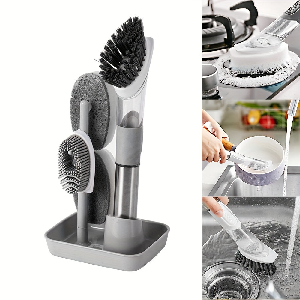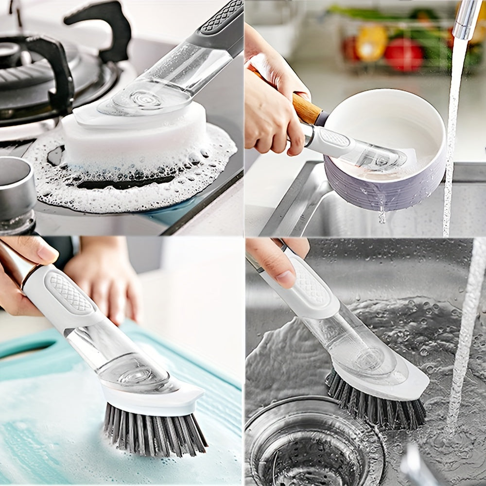Oshxona tozalash cho'tkasi to'plami, sovun dozatori bilan, uzoq tutqichli, olib tashlanadigan gubka