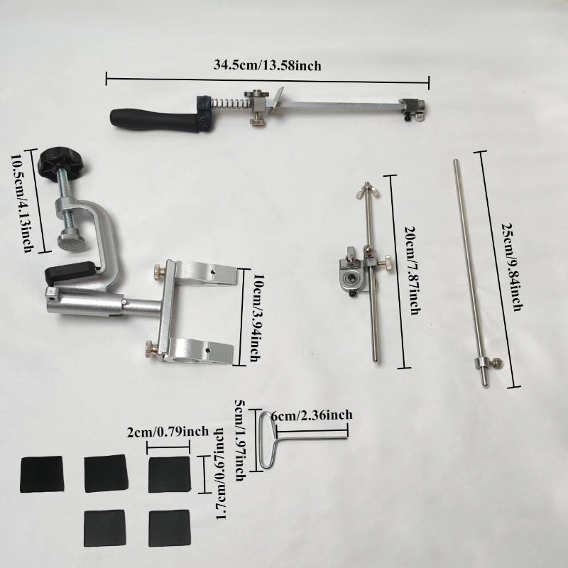 Boshqariladigan burchak va statik silliqlash moslamasi bilan oshxona asboblarini silliqlash tizimi.