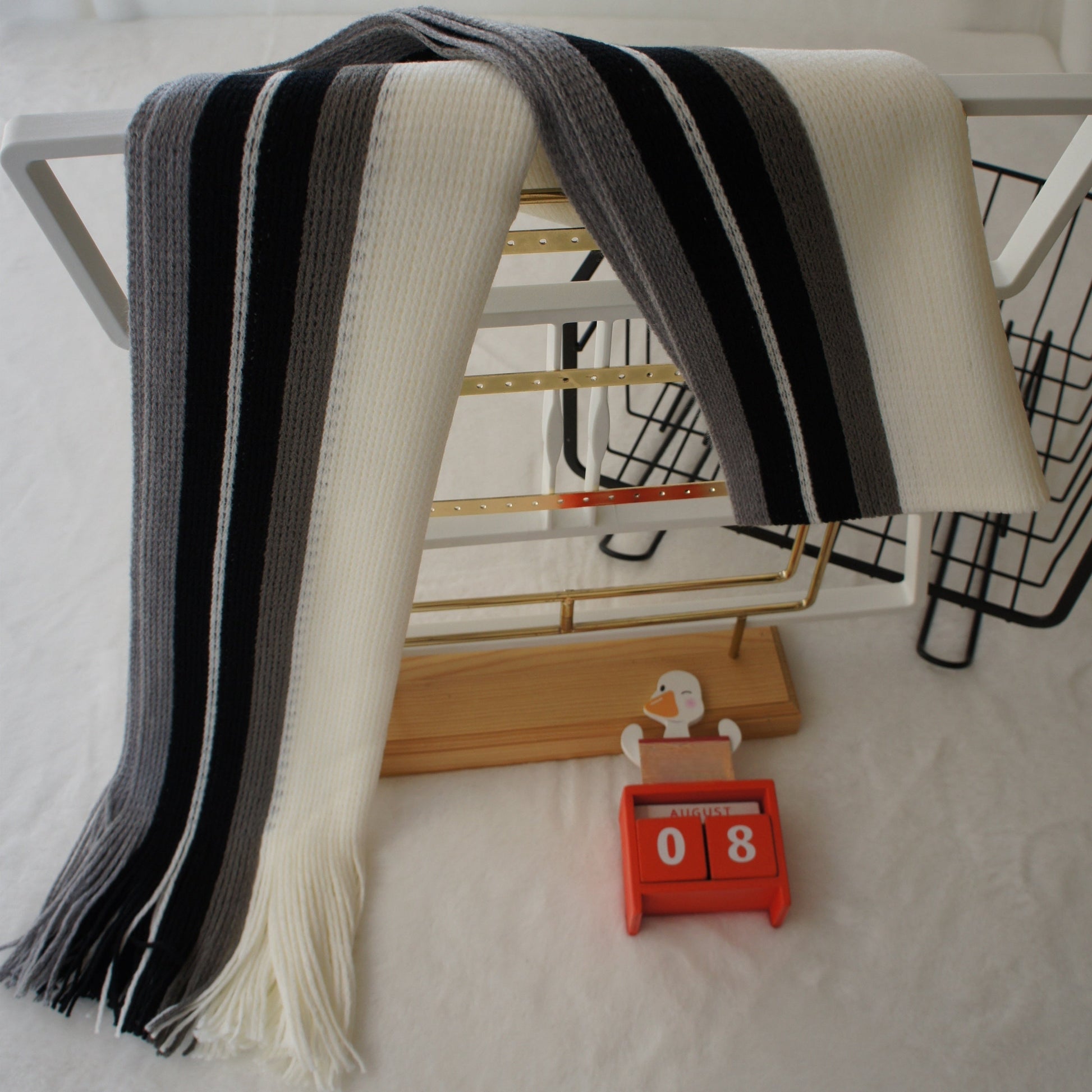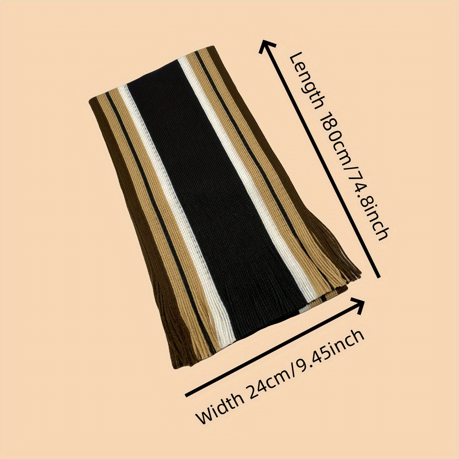 Tashqi trend uchun to'qilgan moda aksessuar - Erkaklar uchun tasma detali bilan rangli blokli chiziqli sharf, iliq akril materialdan tayyorlangan