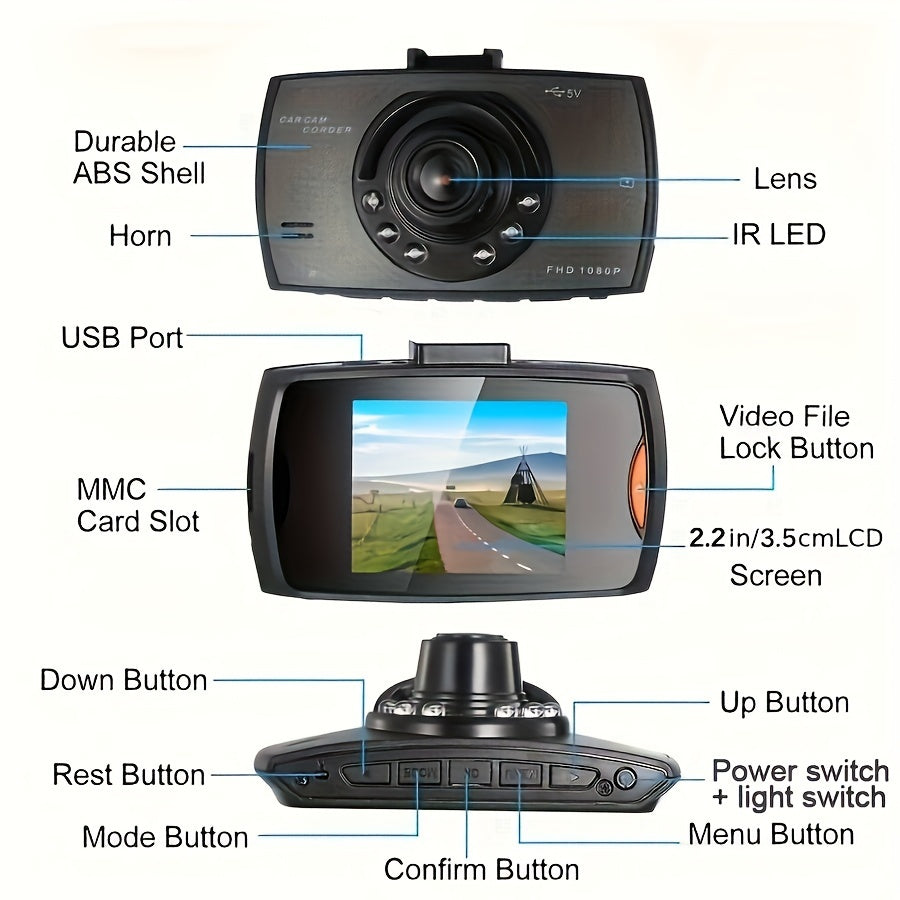 KSLMIMA HD Avtomobil Kamerasi IR Tungi Ko‘rish, Takroriy Yozysh, Keng Burchakli Linza, 6.1 sm IPS Ekran, 32G Kartani Tanlash Imkoni