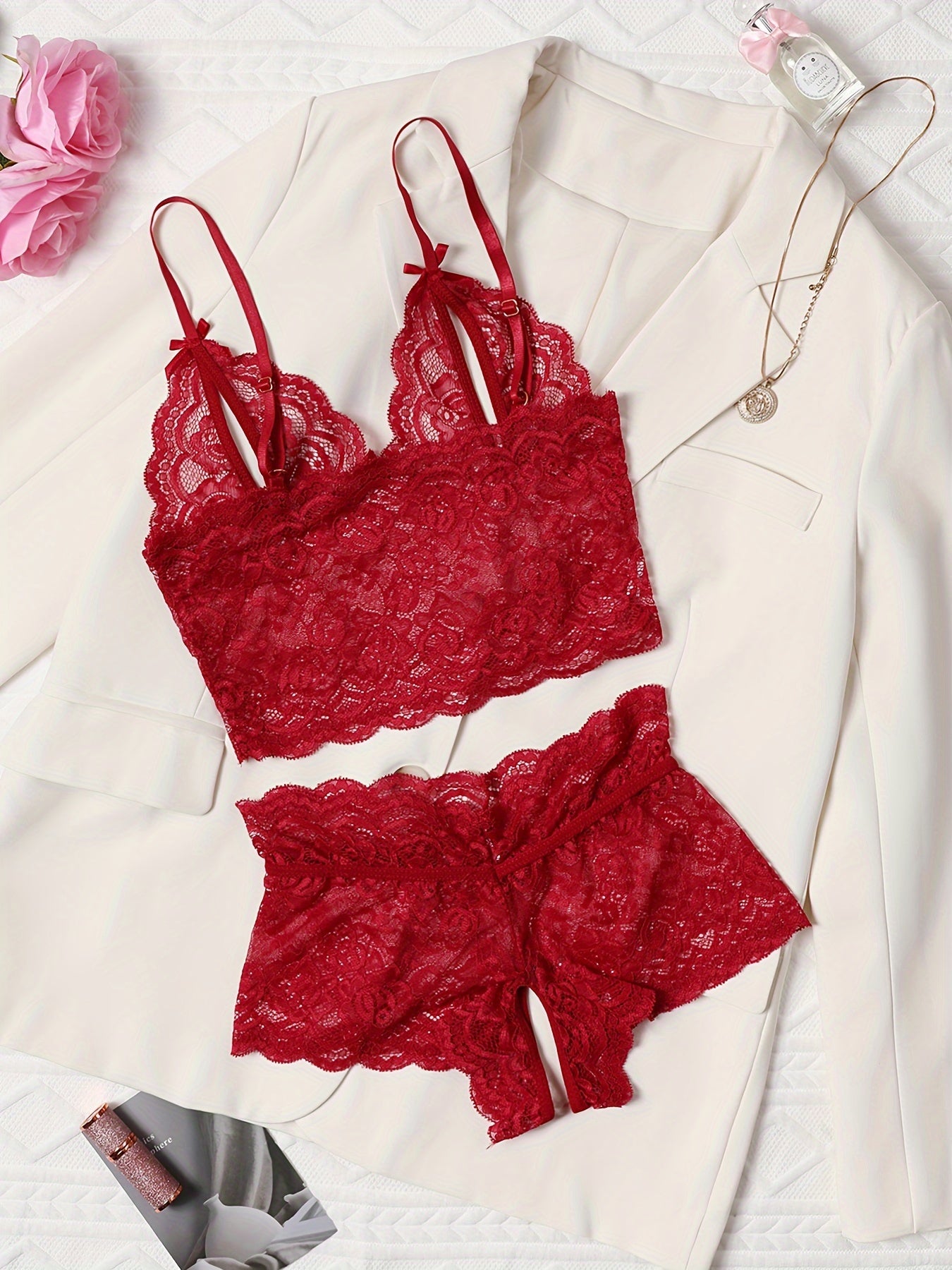 Po'lat halqalarsiz, ayollar uchun bo'sh dizayni va qorin qismisiz ichki kiyim bilan to'ldirilgan dantel tikuvli brassu va ichki kiyim to'plami.