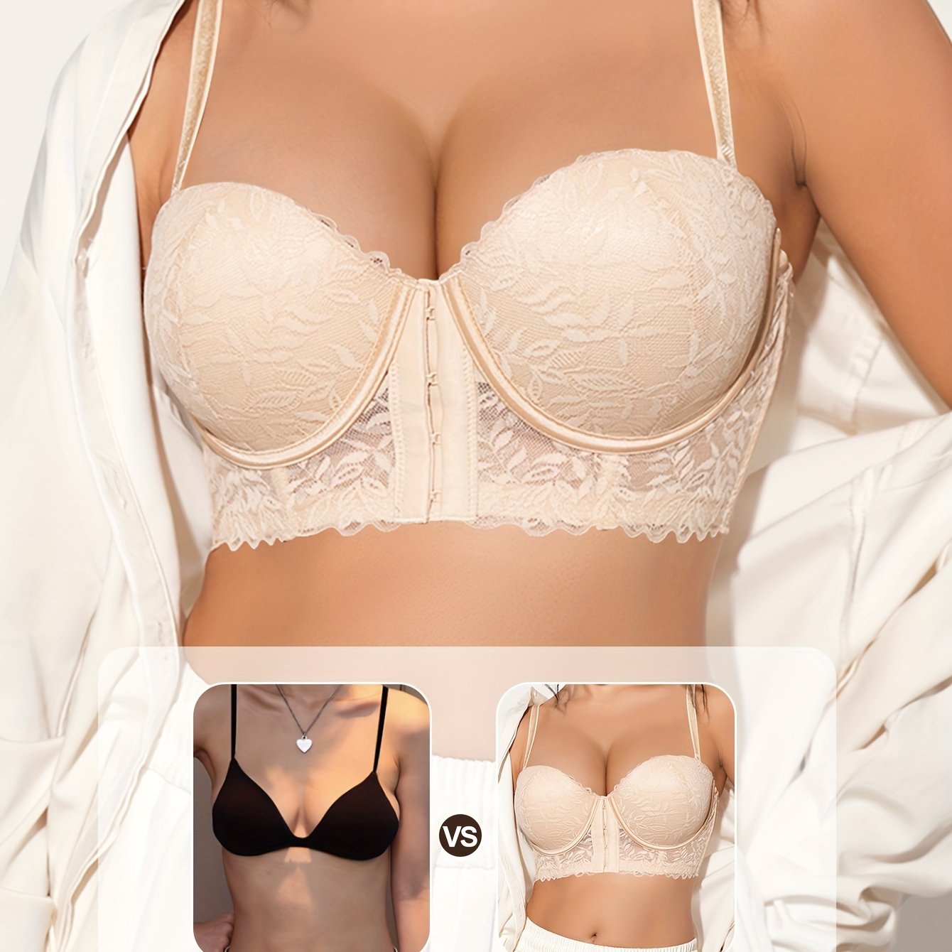 Old qismida tugma va ajratiladigan yelka tasmalari bilan yarim kubik dantel ichki kiyim, qulay va ko'p funksiyali kiyish uchun. Ko'rinmas brassier varianti.