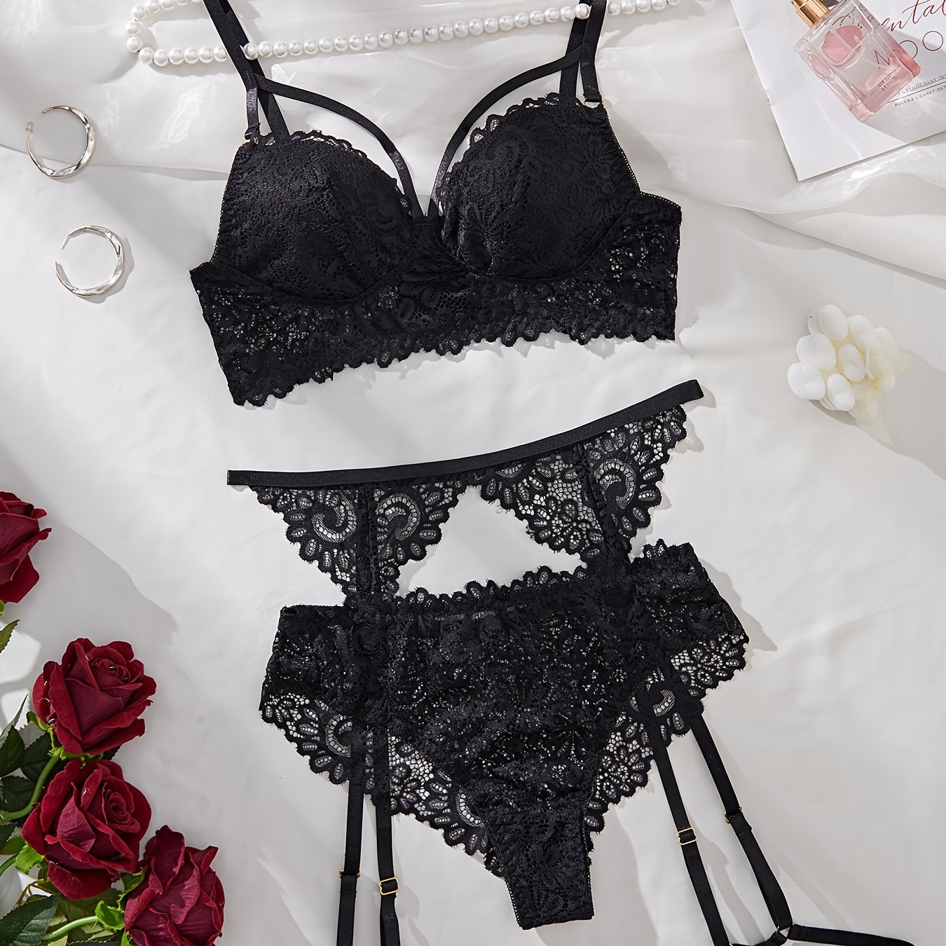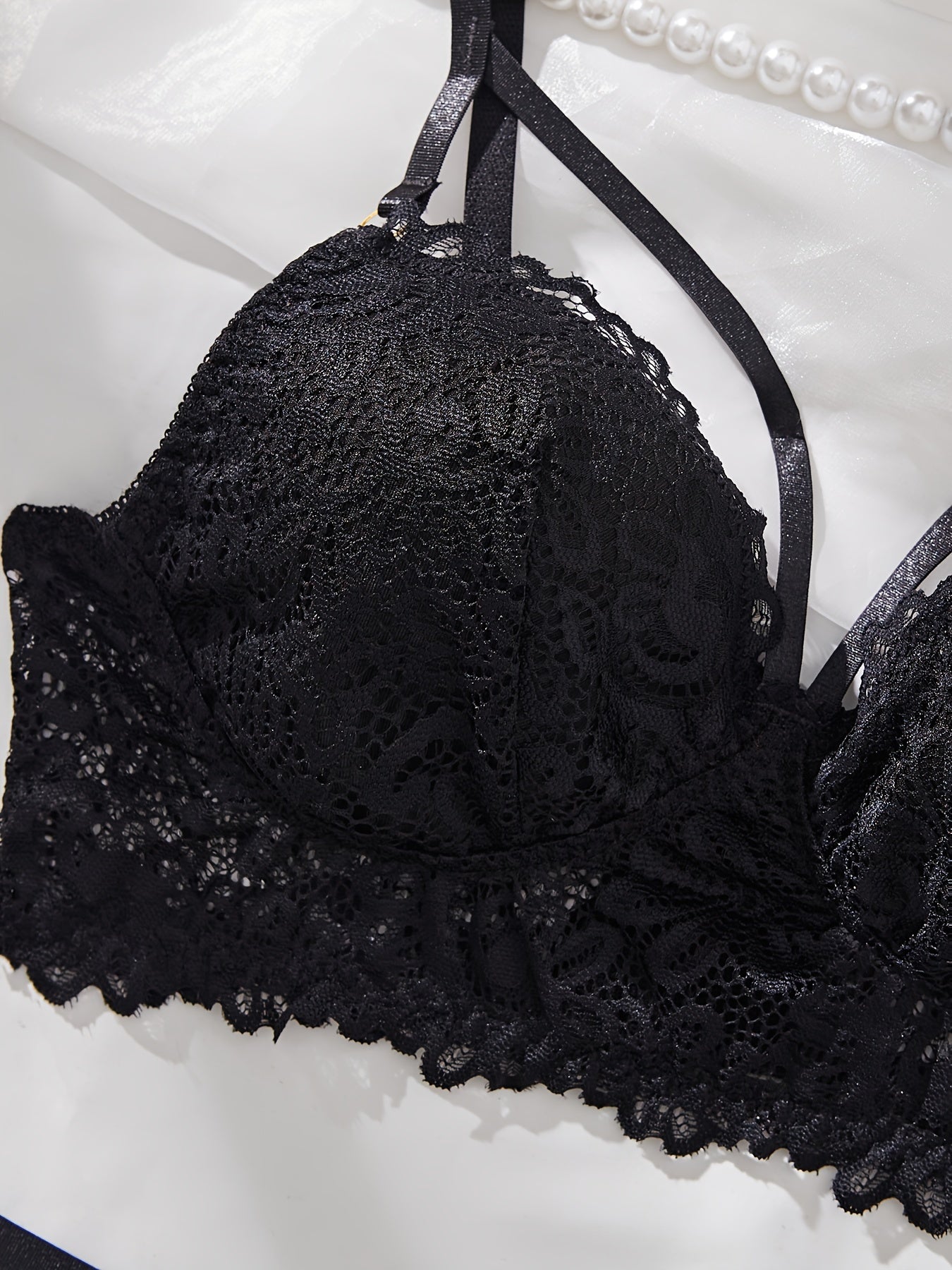 Ayollar uchun jozibali uslubda zamonaviy dizaynga ega dantel ichki kiyim to'plami.